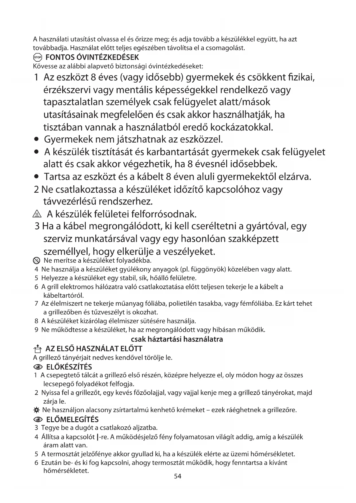 •A készülék tisztítását és karbantartását gyermekek csak felügyelet