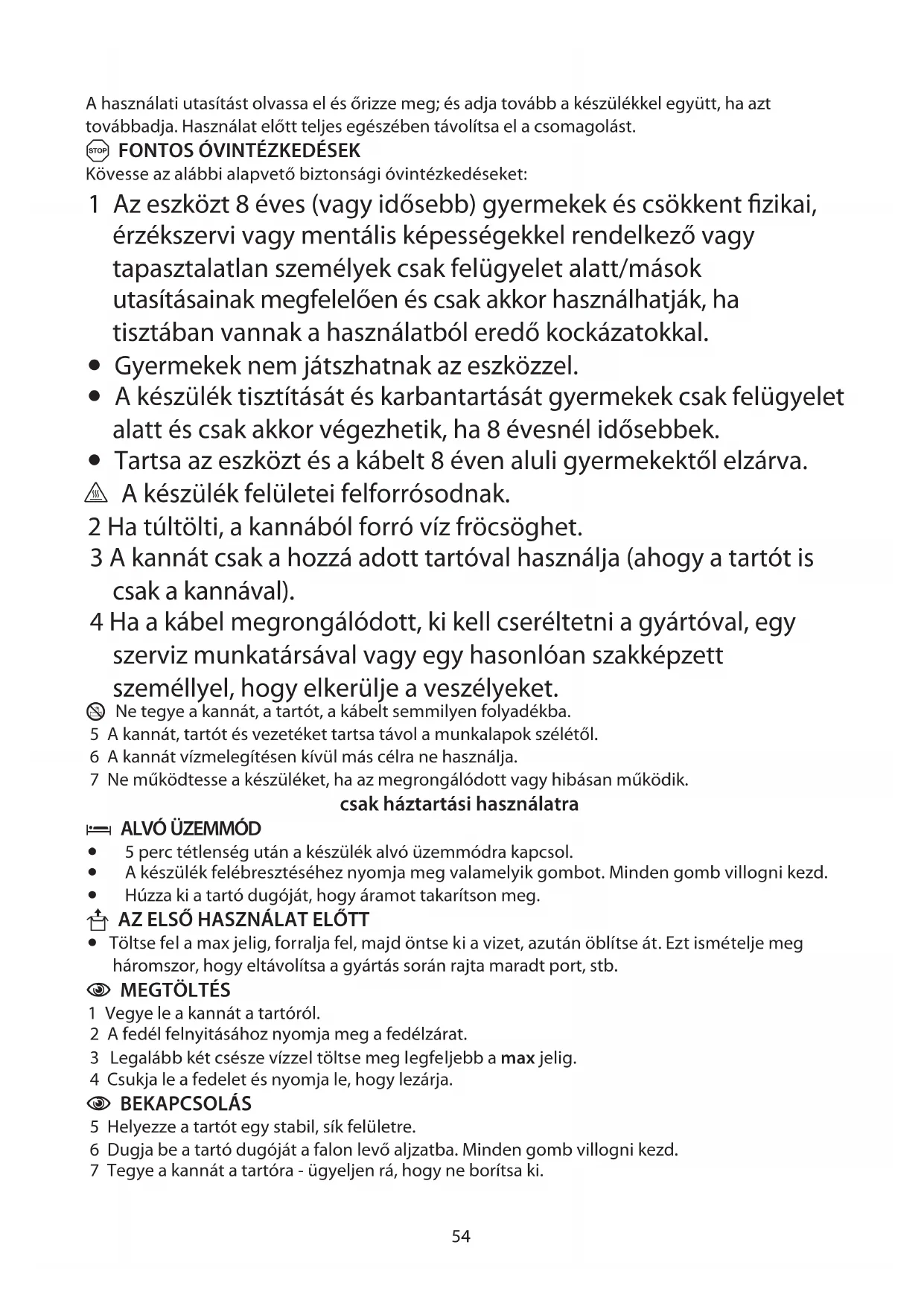 6 A kannát vízmelegítésen kívül más célra ne használja.