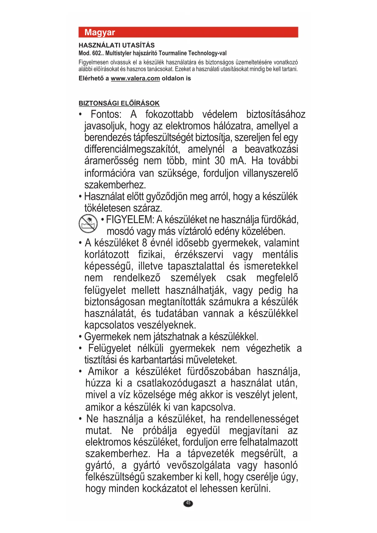 HASZNÁLATI ÚTMUTATÓ Pro Style 400 Tourmaline 602.01B VALERA