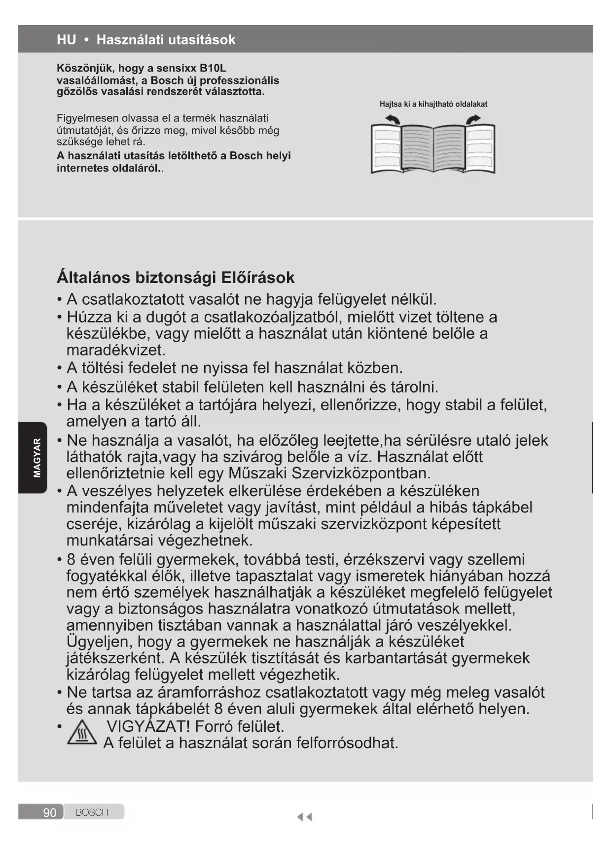 • A csatlakoztatott vasalót ne hagyja felügyelet nélkül.