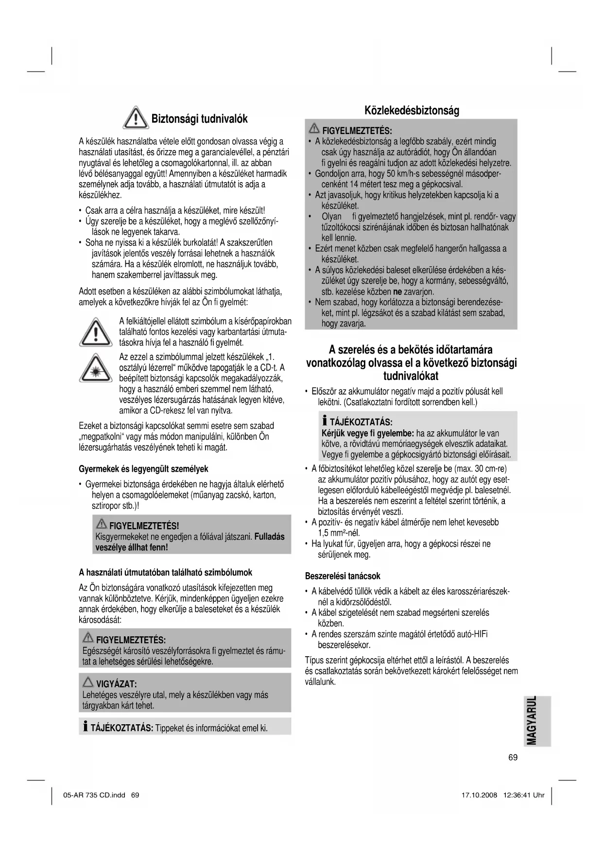 MAGYARUL MAGYARUL Biztonsági tudnivalók