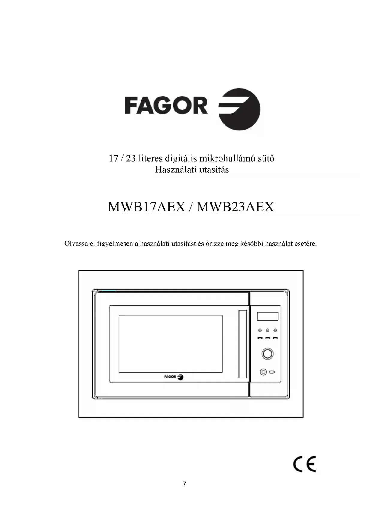 HASZNÁLATI ÚTMUTATÓ MWB23AEX FAGOR