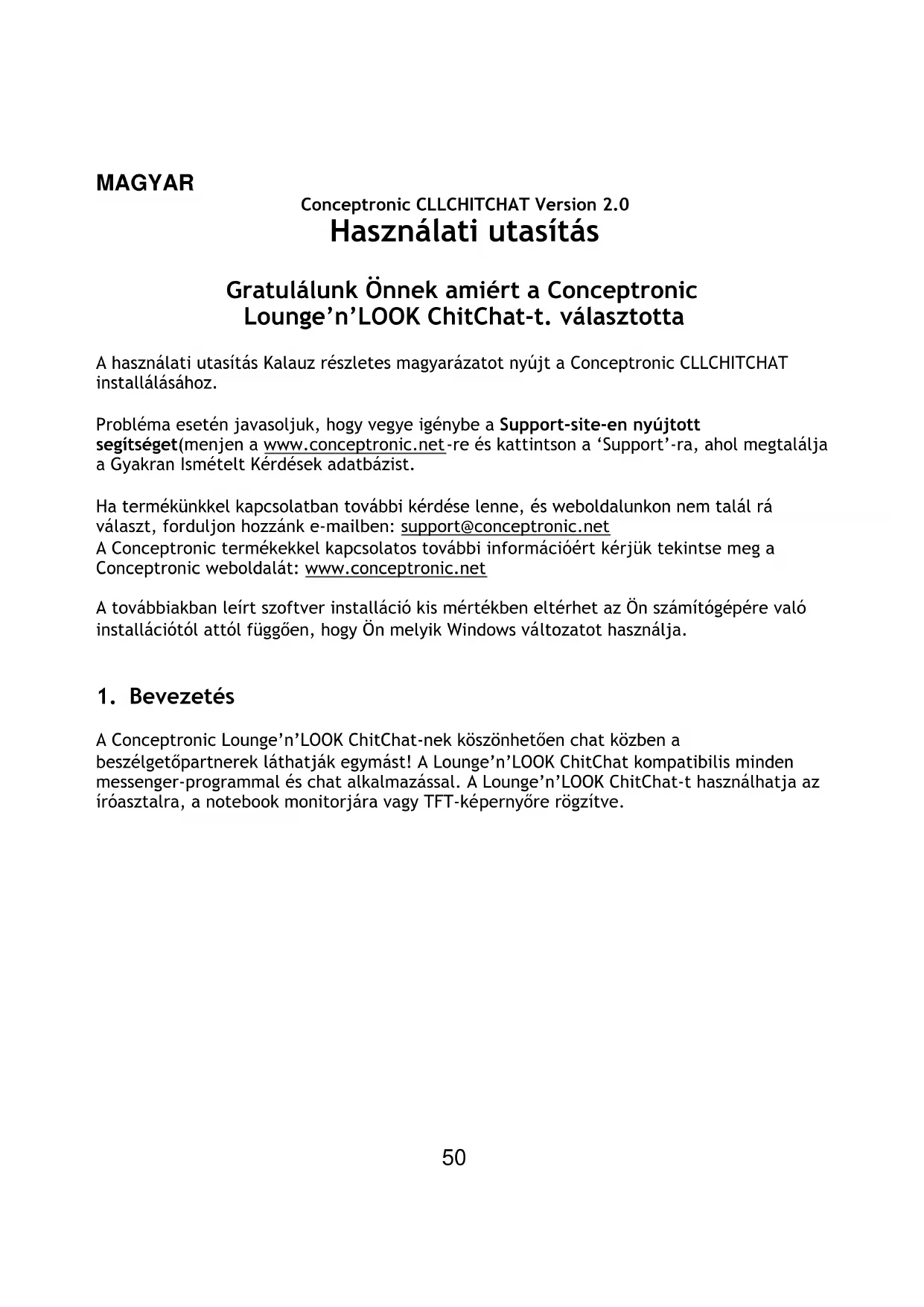 A hasznalatiutasitas Kalauz részletes magyarazatot nyujt a Conceptronic CLLCHITCHAT installalasahoz.