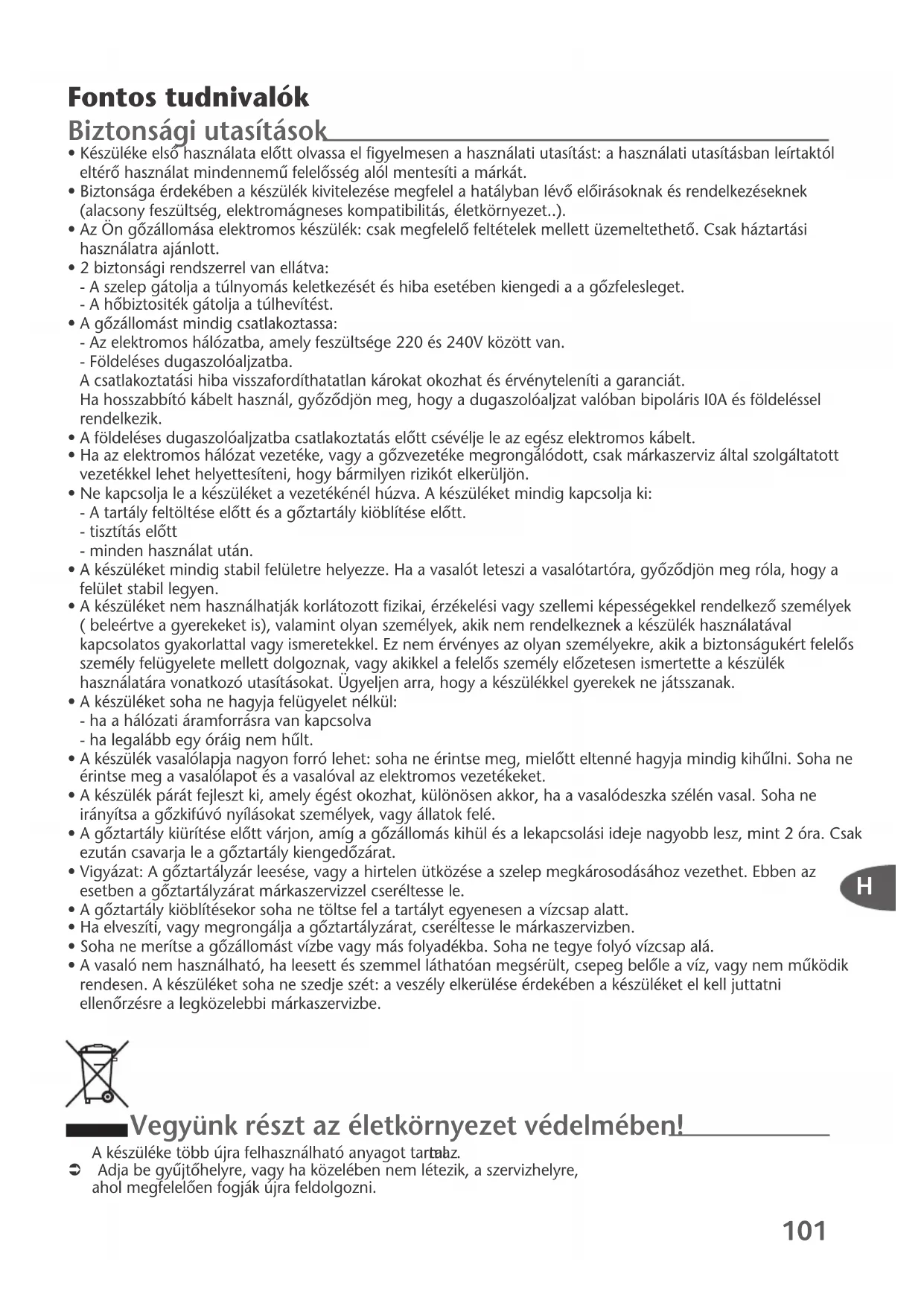 • Az Ön gŒzállomása elektromos készülék: csak megfelelŒ feltételek mellett üzemeltethetŒ. Csak háztartási