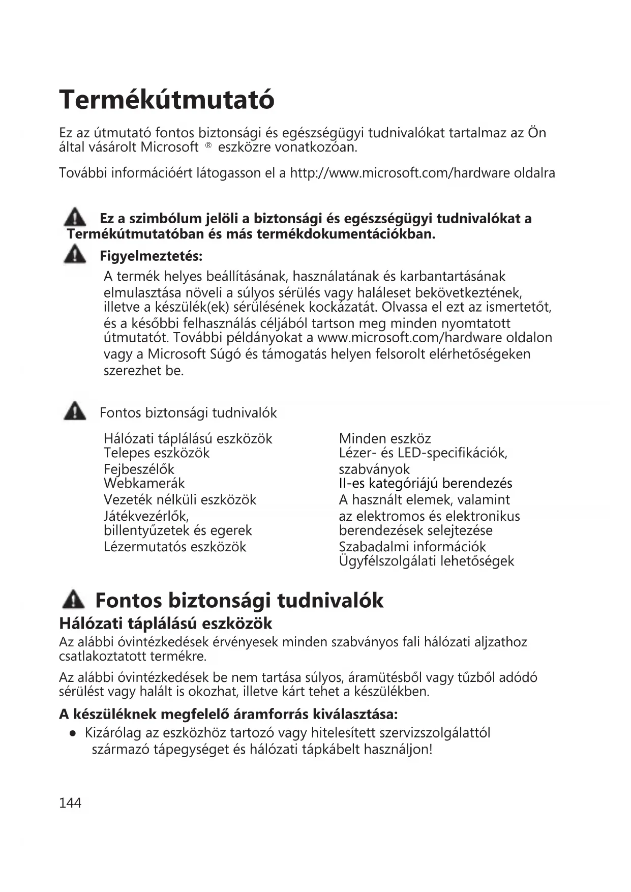útmutatót. További példányokat a www.microsoft.com/hardware oldalon