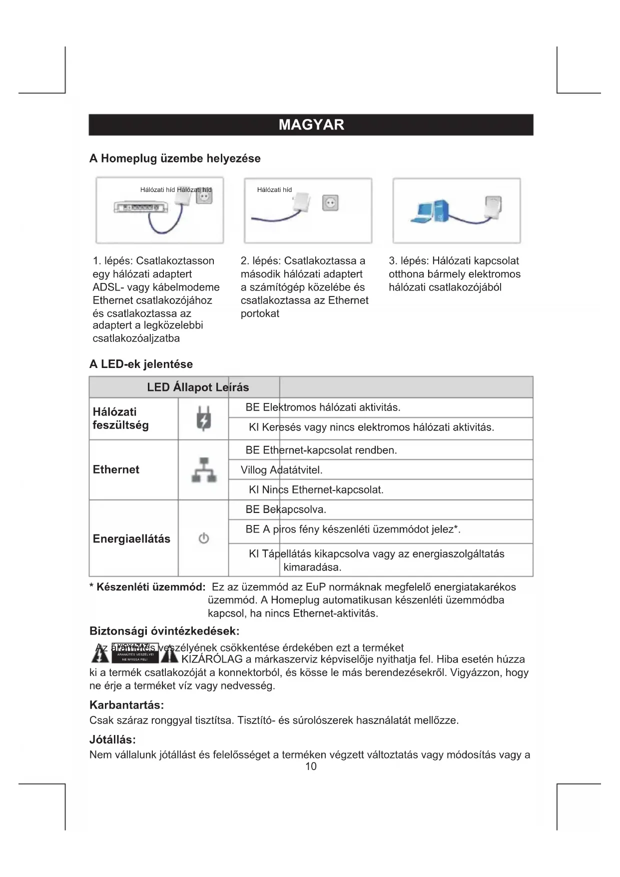 NO ABRIR ATENCIÓN10 MAGYAR A Homeplug üzembe helyezése Hálózati híd Hálózati híd Hálózati híd