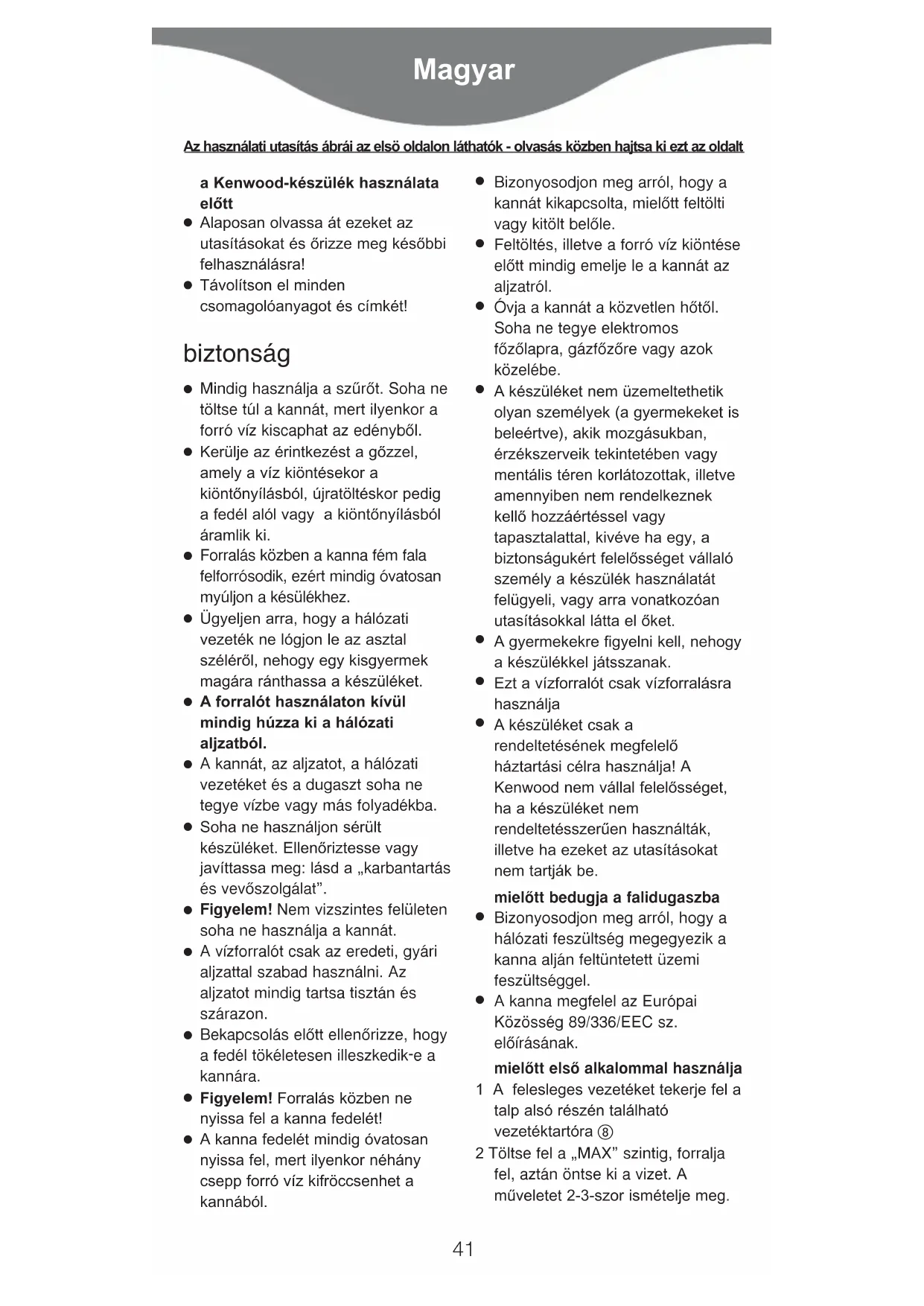 Az használati utasítás ábrái az elsö oldalon láthatók - olvasás közben hajtsa ki ezt az oldalta vízforraló kanna