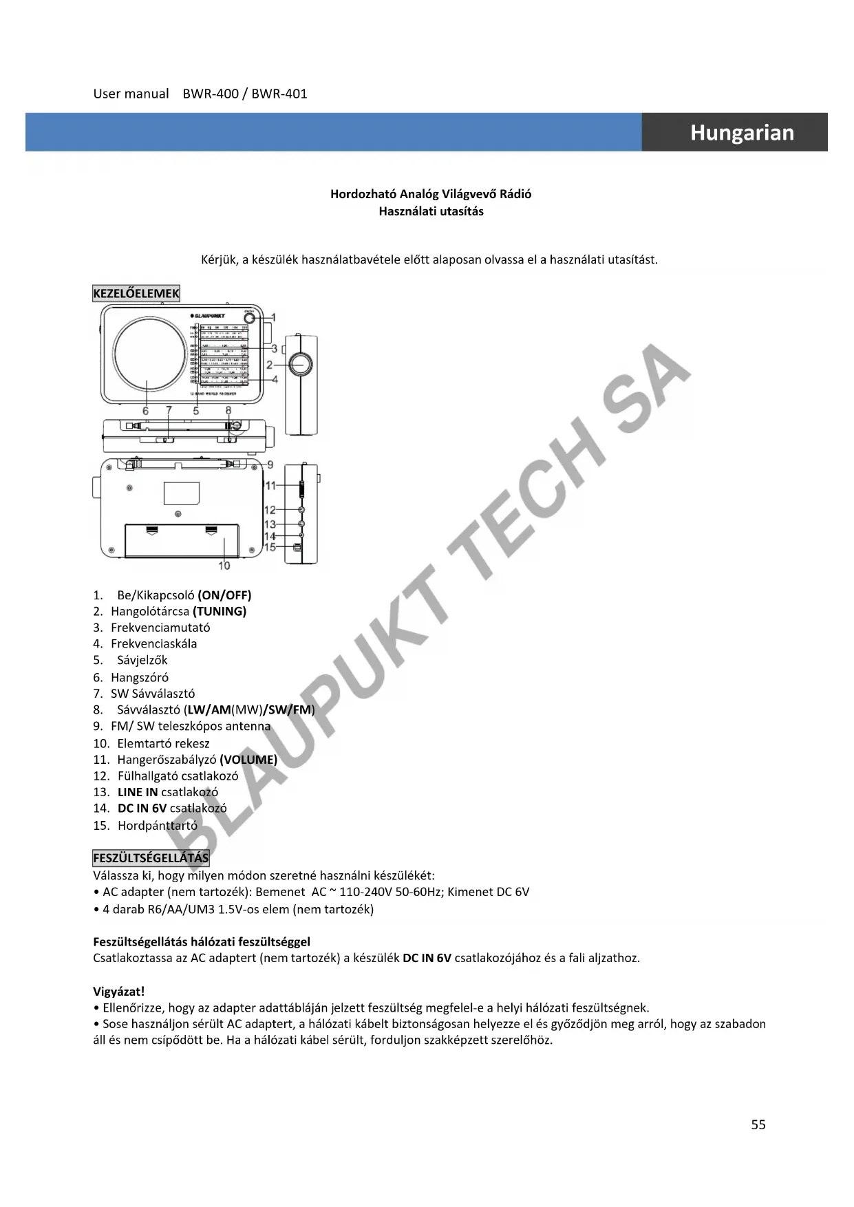 HASZNÁLATI ÚTMUTATÓ BWR400 BLAUPUNKT
