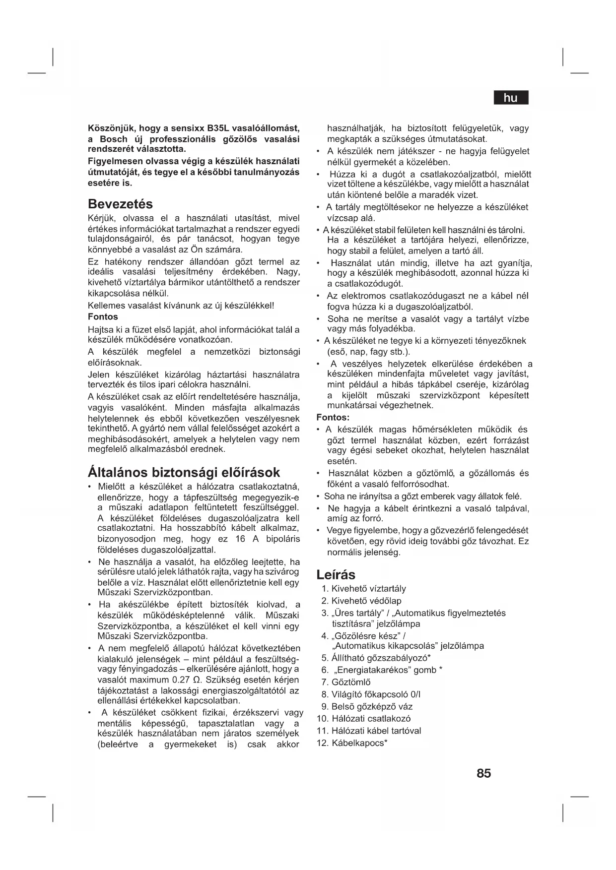 hu Használati utasítások
