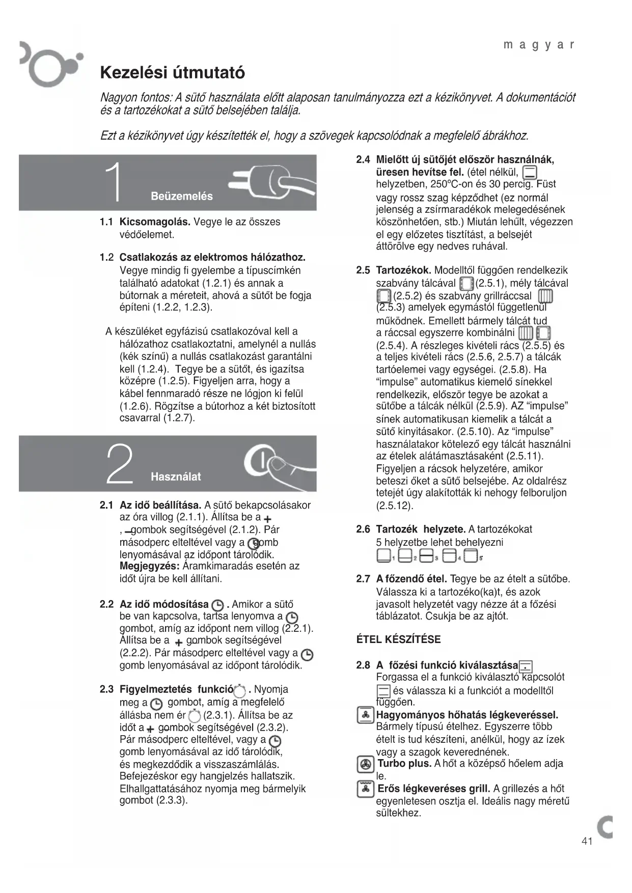Nagyon fontos: A sütő használata előtt alaposan tanulmányozza ezt a kézikönyvet. A dokumentációt