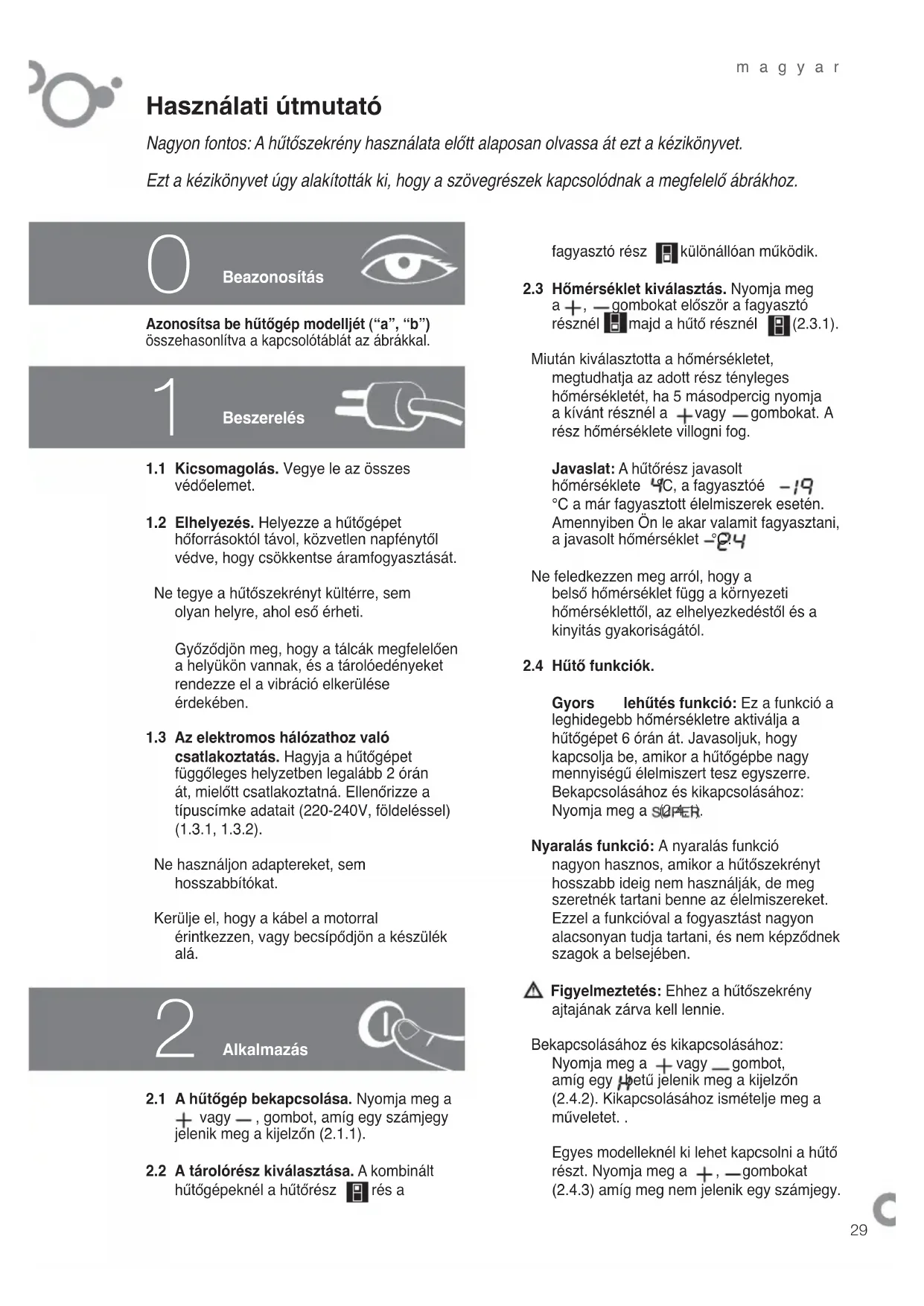 Nagyon fontos: A hűtőszekrény használata előtt alaposan olvassa át ezt a kézikönyvet.