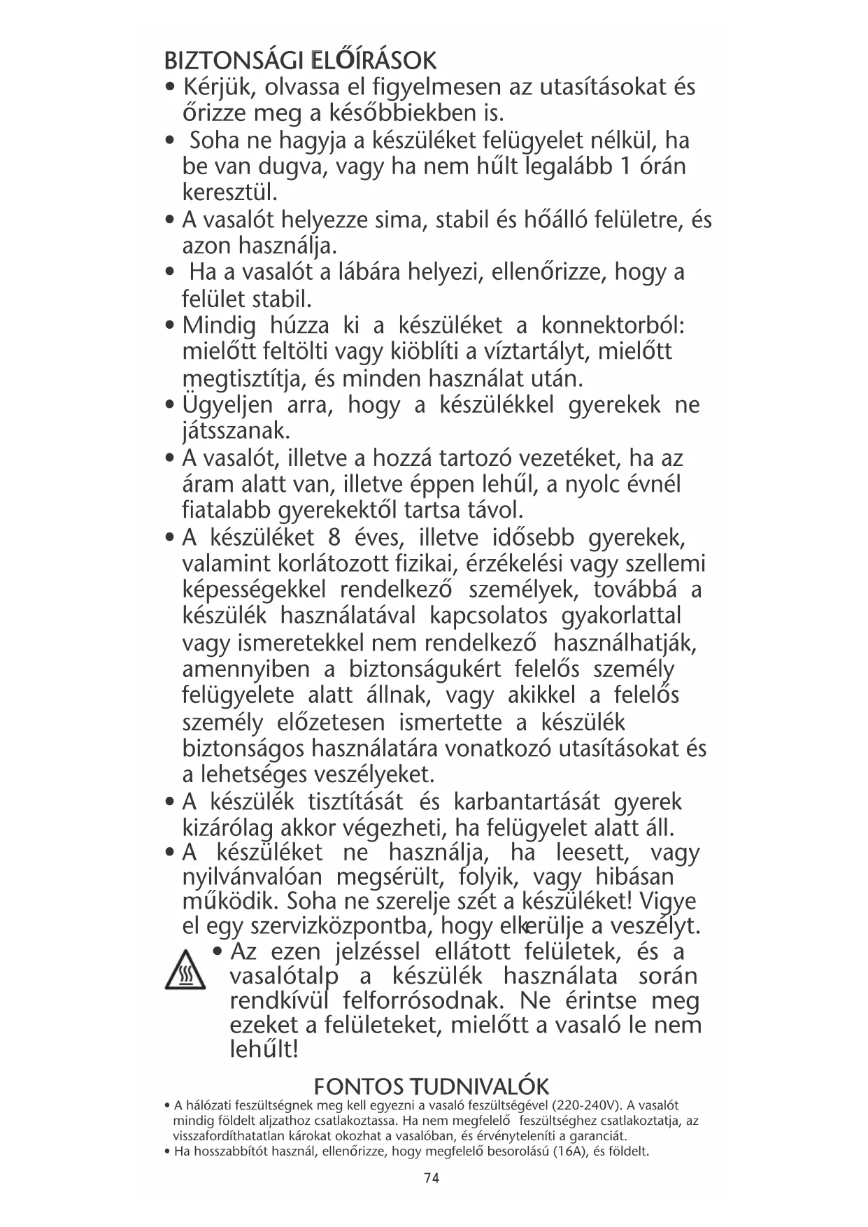 • A hálózati feszültségnek meg kell egyezni a vasaló feszültségével (220-240V). A vasalót