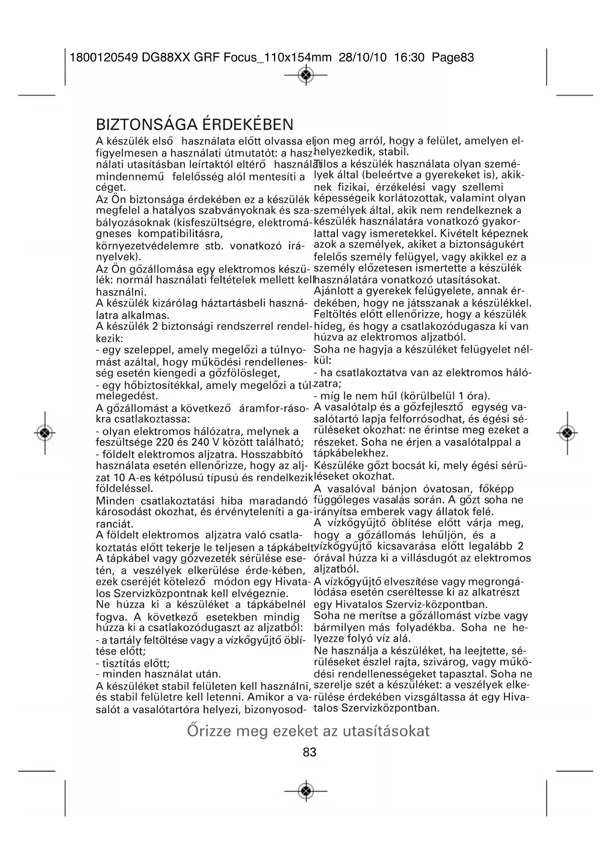 Őrizze meg ezeket az utasításokat