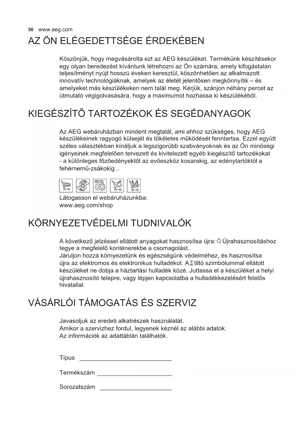AZ ÖN ELÉGEDETTSÉGE ÉRDEKÉBEN Köszönjük, hogy megvásárolta ezt az AEG készüléket. Termékünk készítésekor