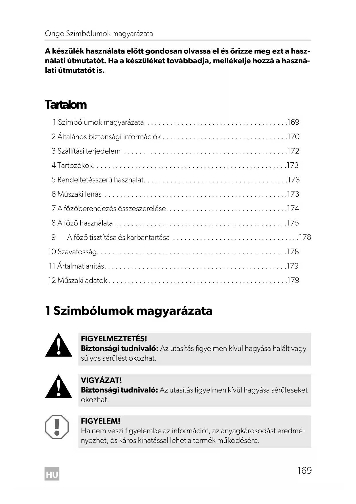 Origo-A100-A200--O-16s.book Seite 170 Freitag, 18. Mai 2018 10:40 10HU Origo Általános biztonsági információk