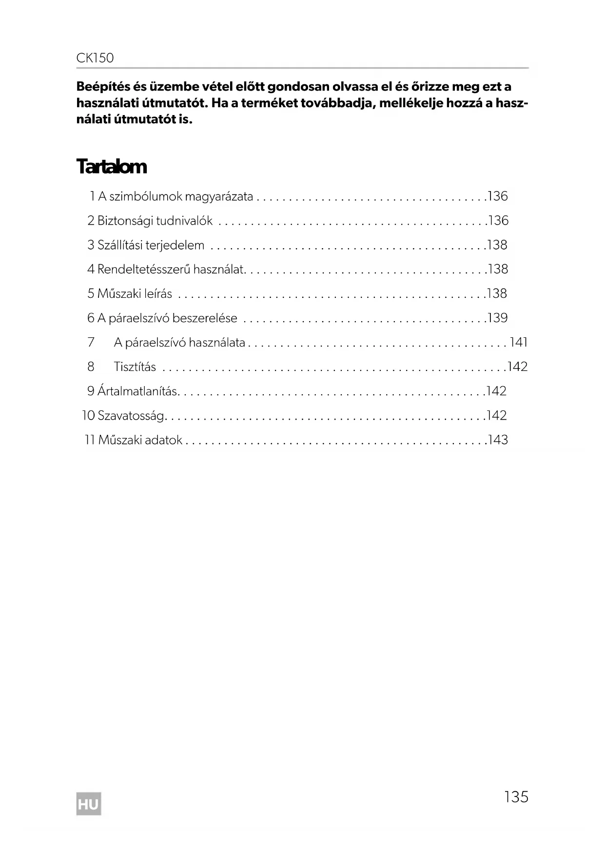 6 A páraelszívó beszerelése . . . . . . . . . . . . . . . . . . . . . . . . . . . . . . . . . . . . . .139