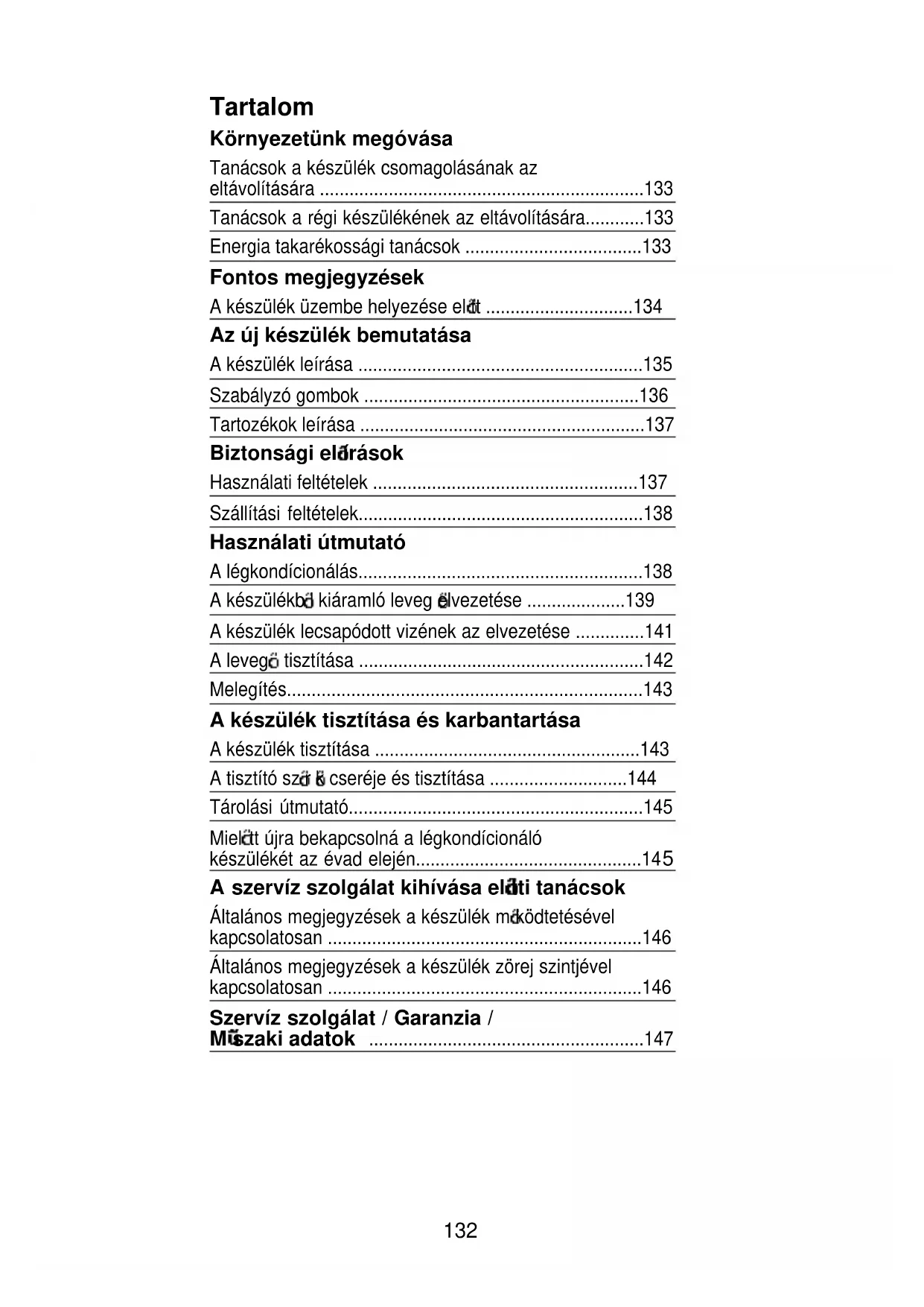A készülék lecsapódott vizének az elvezetése 141