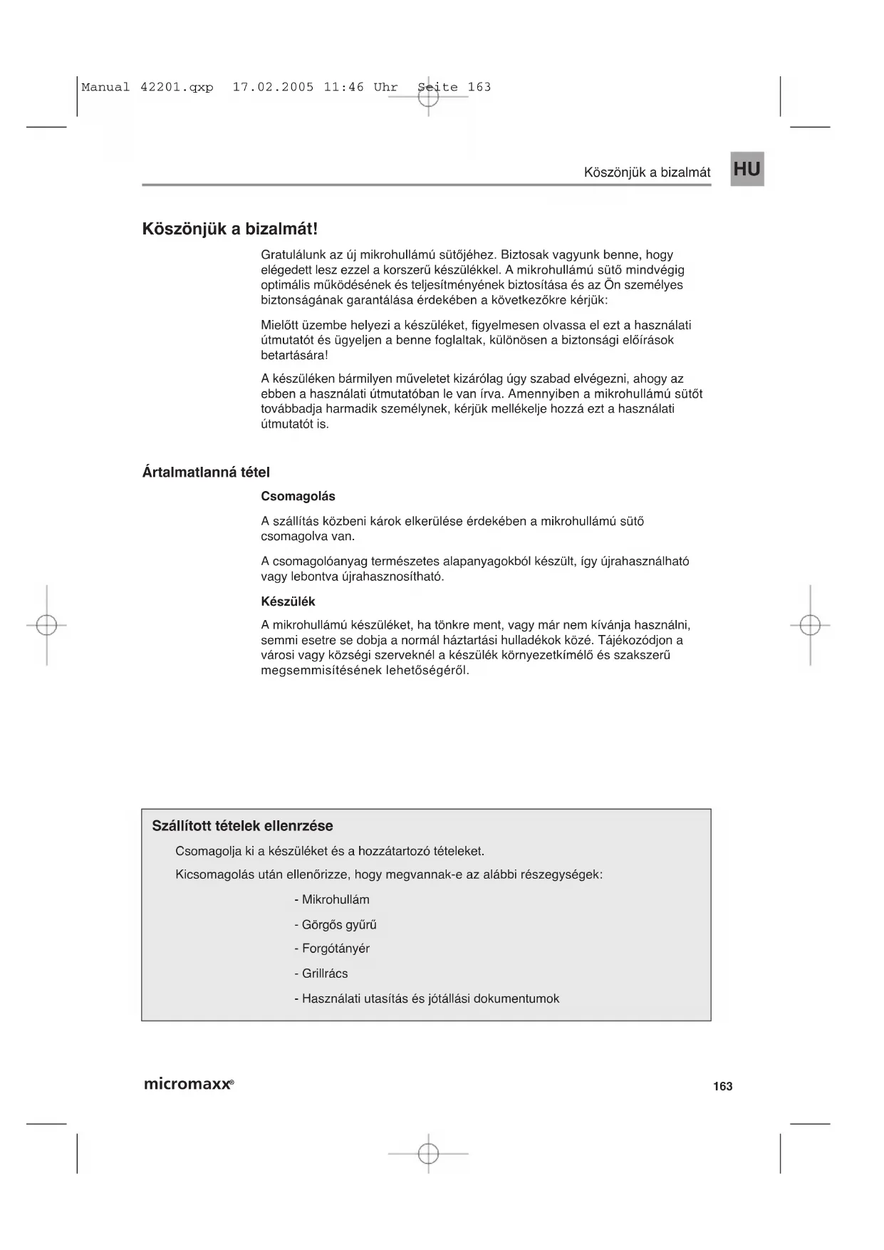HASZNÁLATI ÚTMUTATÓ MM 42201 Micromaxx