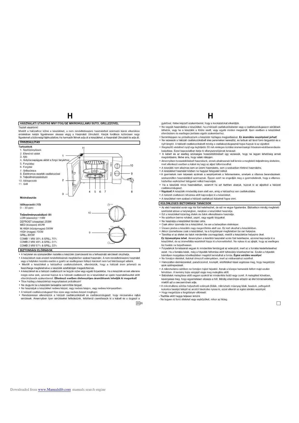 Találja meg az eszköz kézikönyvét ingyenesen MW 170 G ELTA PDF formátumban.