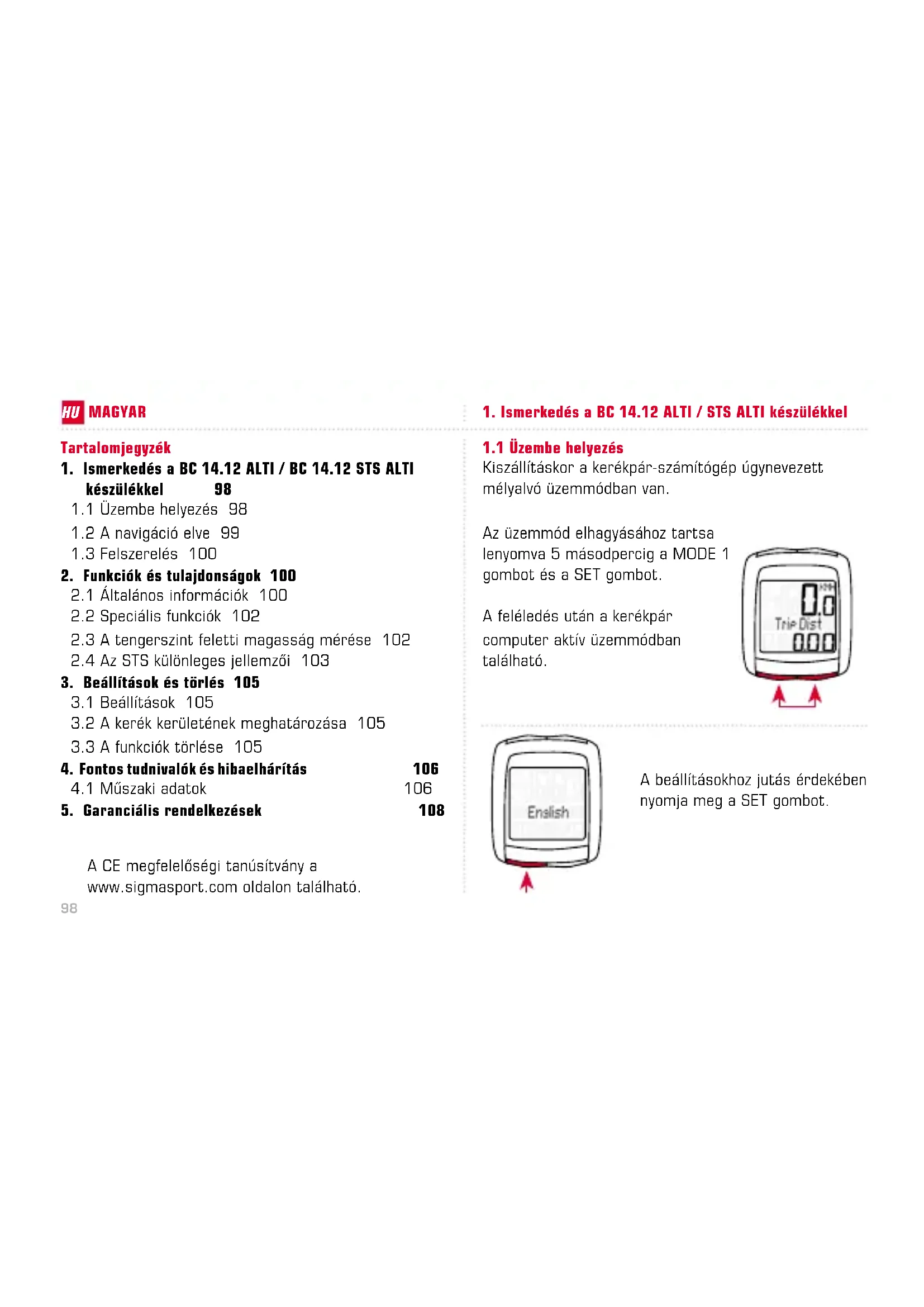 BC 14.12 STS ALTI - Mérő SIGMA - Ingyenes használati útmutató