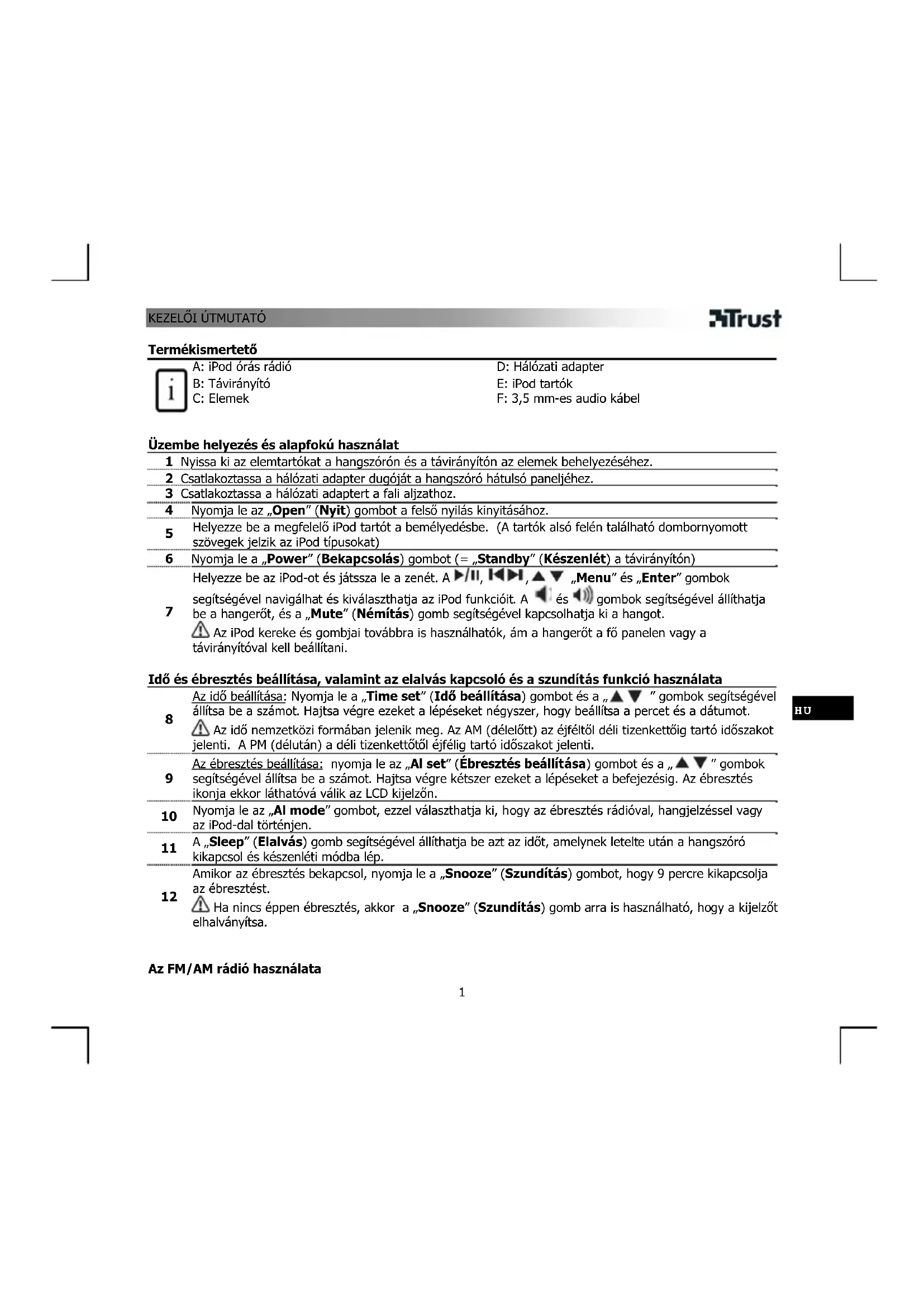 SP2993 - Rádió ébresztőóra TRUST - Ingyenes használati útmutató