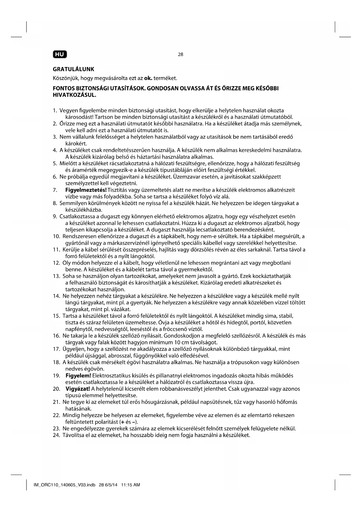 HASZNÁLATI ÚTMUTATÓ ORC 110 OK