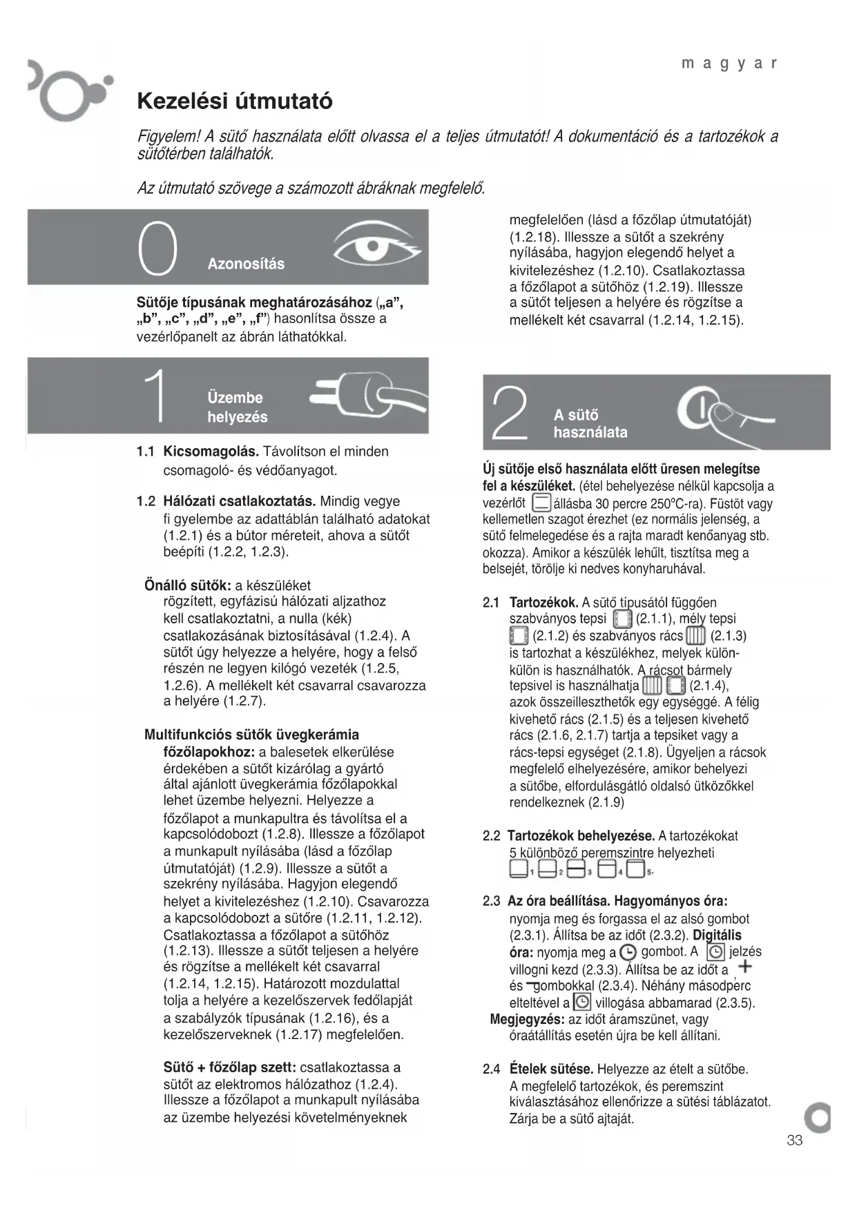 Kezelési útmutató Figyelem! A sütő használata előtt olvassa el a teljes útmutatót! A dokumentáció és a tartozékok a sütőtérben találhatók. Az útmutató szövege a számozott ábráknak megfelelő.