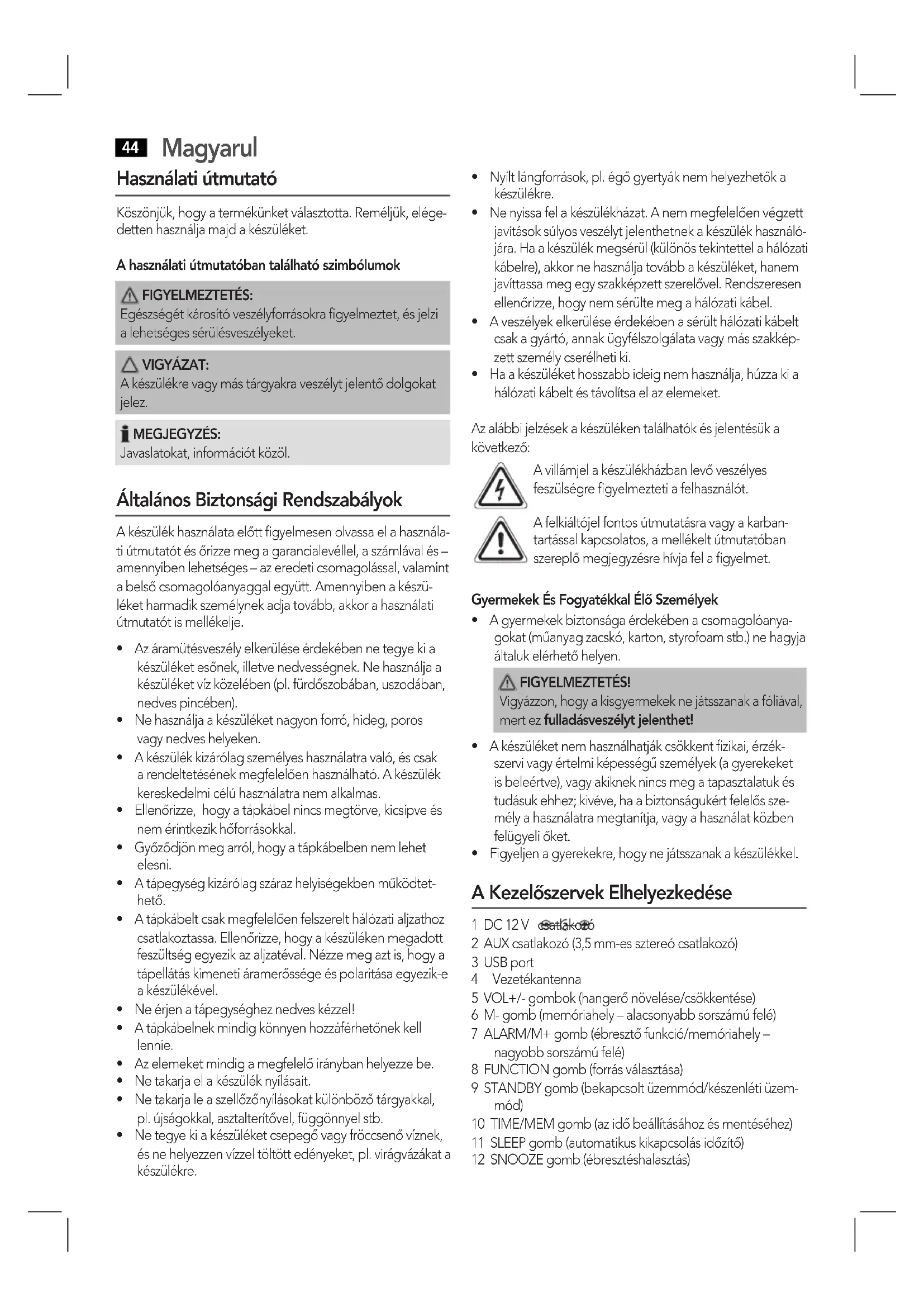 - Az aramutésveszély elkerulése érdekében ne tegye ki a keszüléket esonek, illetve nedvességnek. Ne használia a keszüléket viz kozelében (pl. furdószobában, uzodában, nedves pincében).