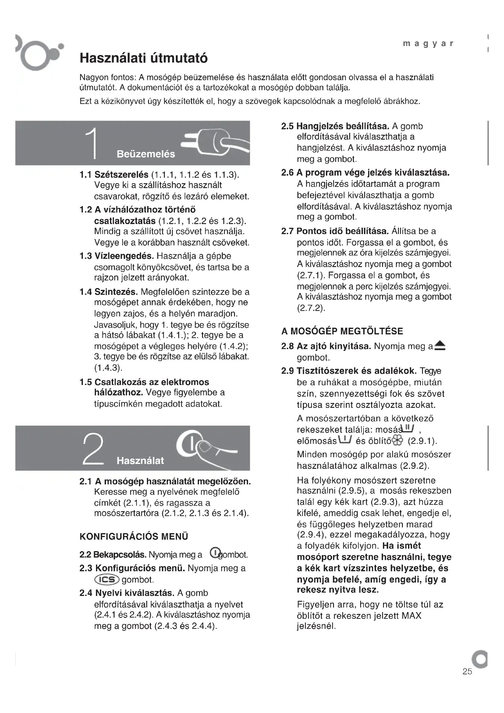2.1 A mosógép használatát megelőzően.