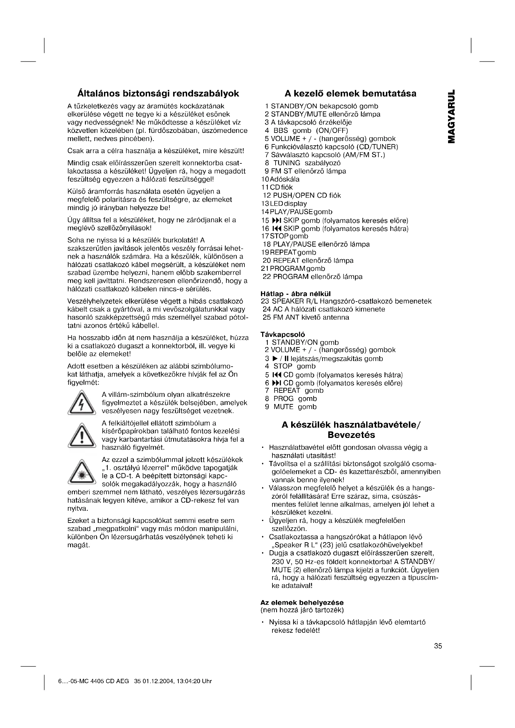 HASZNÁLATI ÚTMUTATÓ MC 4405 CD AEG