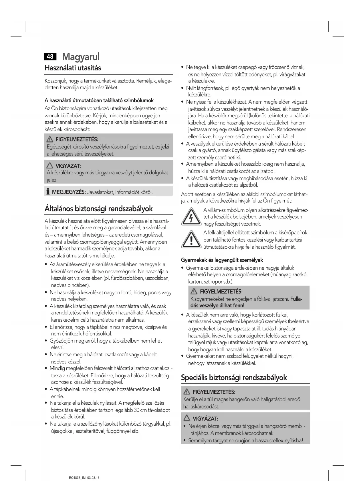Az OnBiztonsagara vonaatkozo utasitaskifejezetten meg vannak kulonböztete. Kjeruk, mindenképpen ugyeljen ezekre annak erdekében, hogy elkerulje a baleseteket es a keszülk károsodásat: