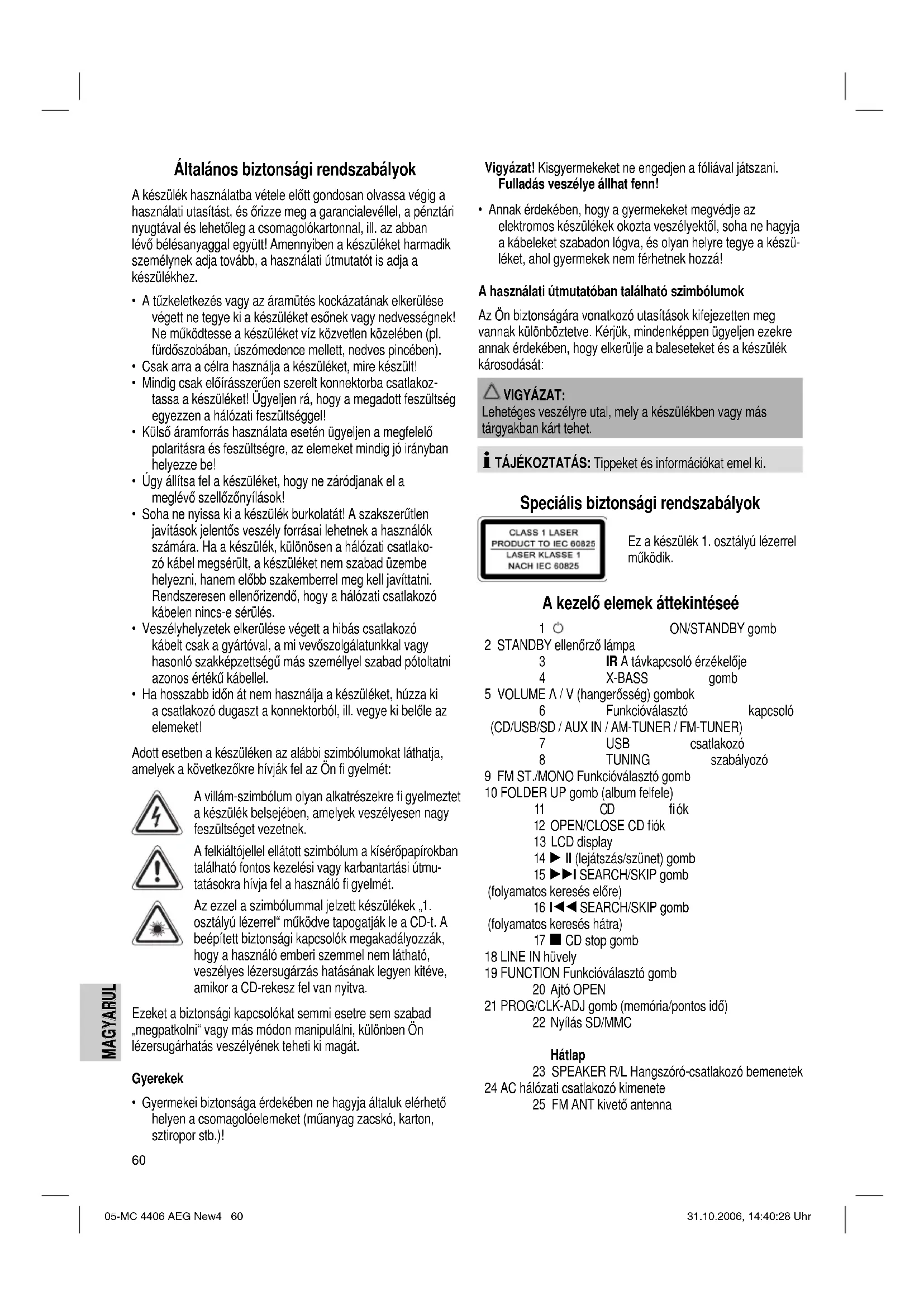 HASZNÁLATI ÚTMUTATÓ MC 4406 CD AEG