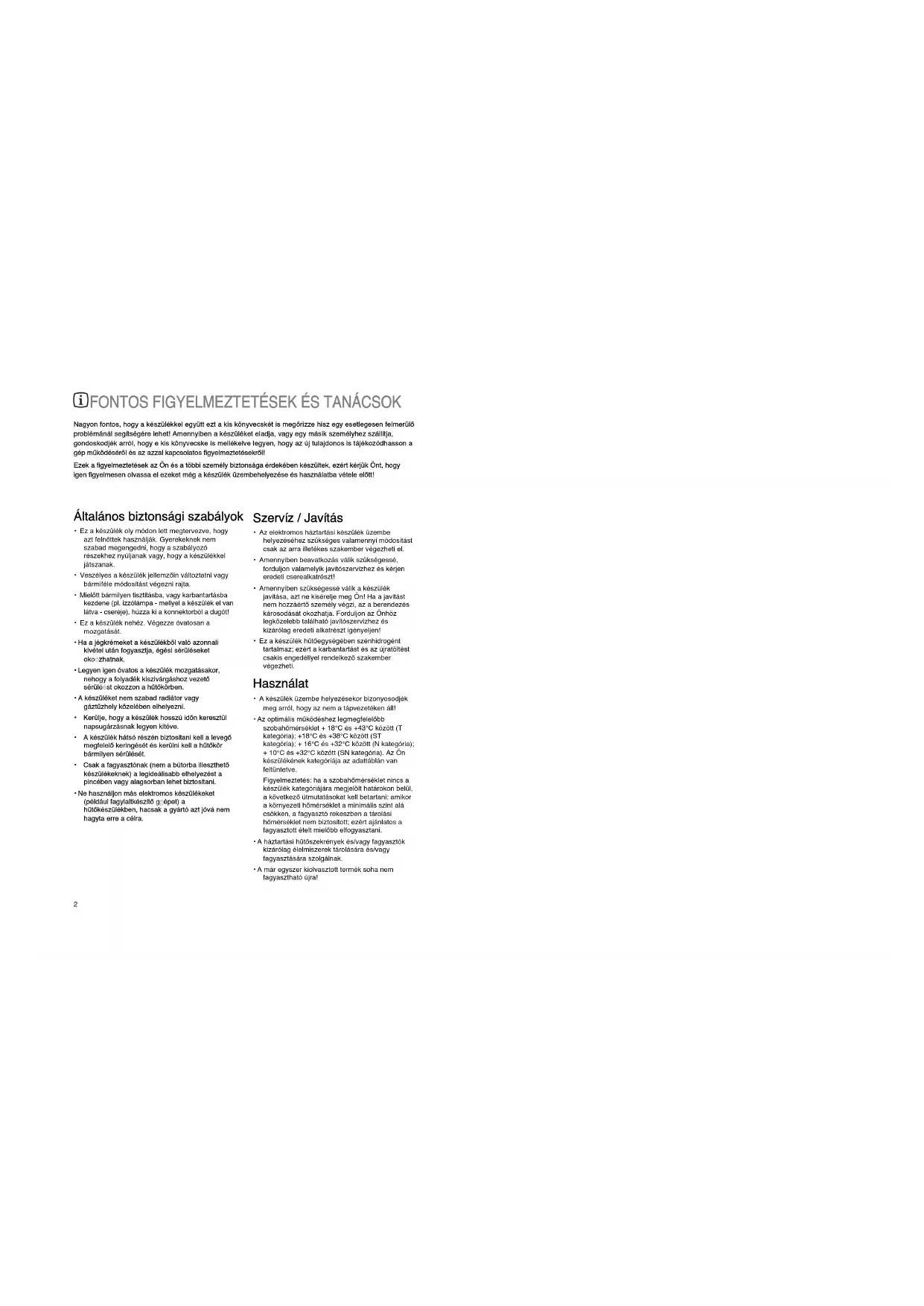 - A háztartási hıtŒszekrények és/vagy fagyasztók kizárólag élelmiszerek tárolására és/vagy fagyasztására szolgálnak.