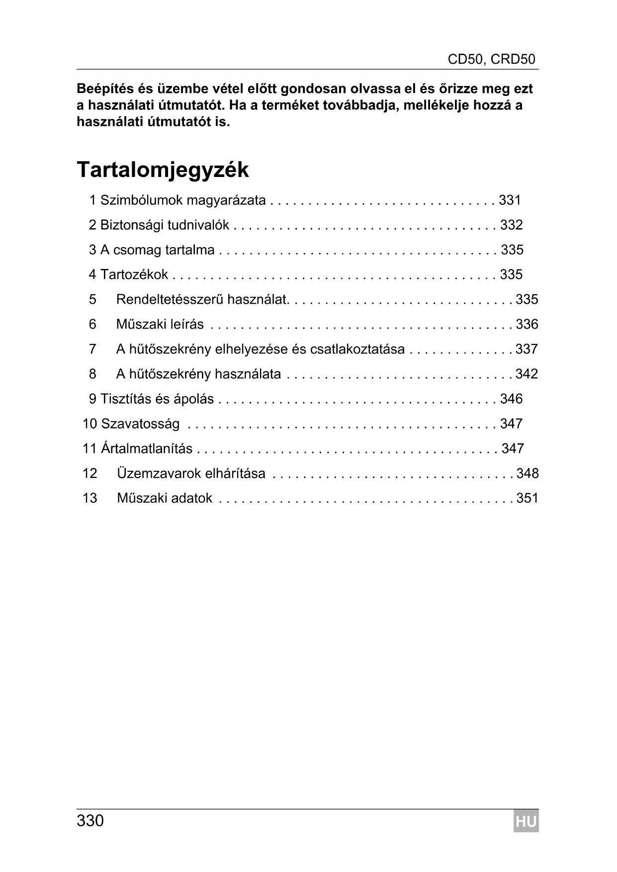- 13 Műszaki adatok HU CD50, CRD50 Szimbólumok magyarázata p. 351