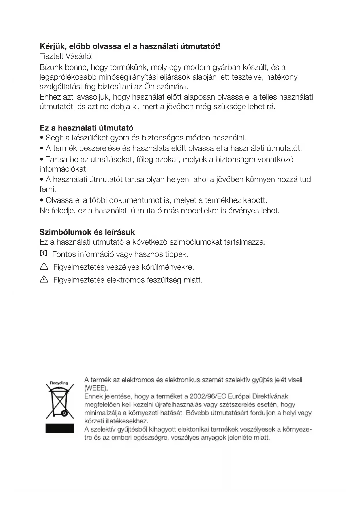 - Tartsa be az utasításokat, főleg azokat, melyek a biztonságra vonatkozó információkat.