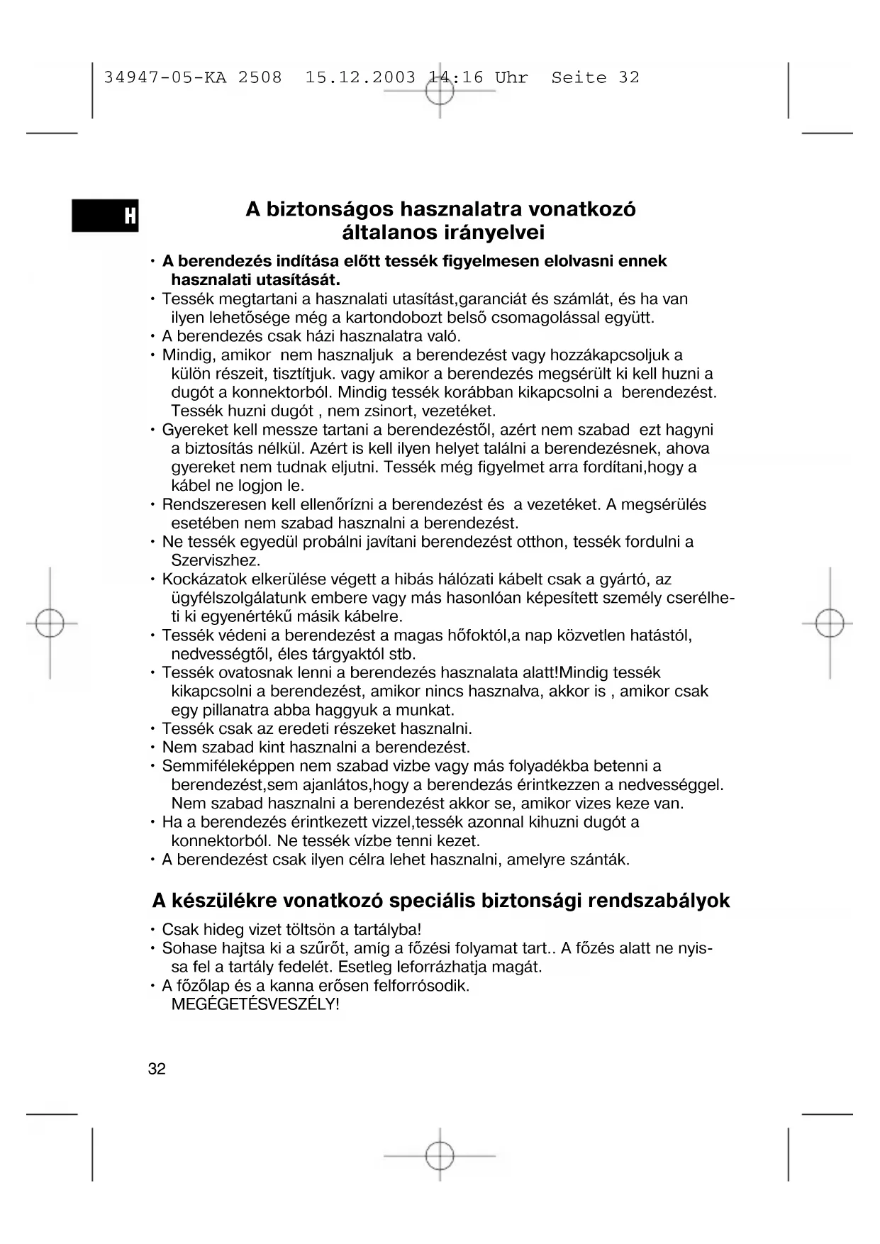 34947-05-KA 2508 15.12.2003 14:16 Uhr Seite 31A biztonságos hasznalatra vonatkozó általanos irányelvei