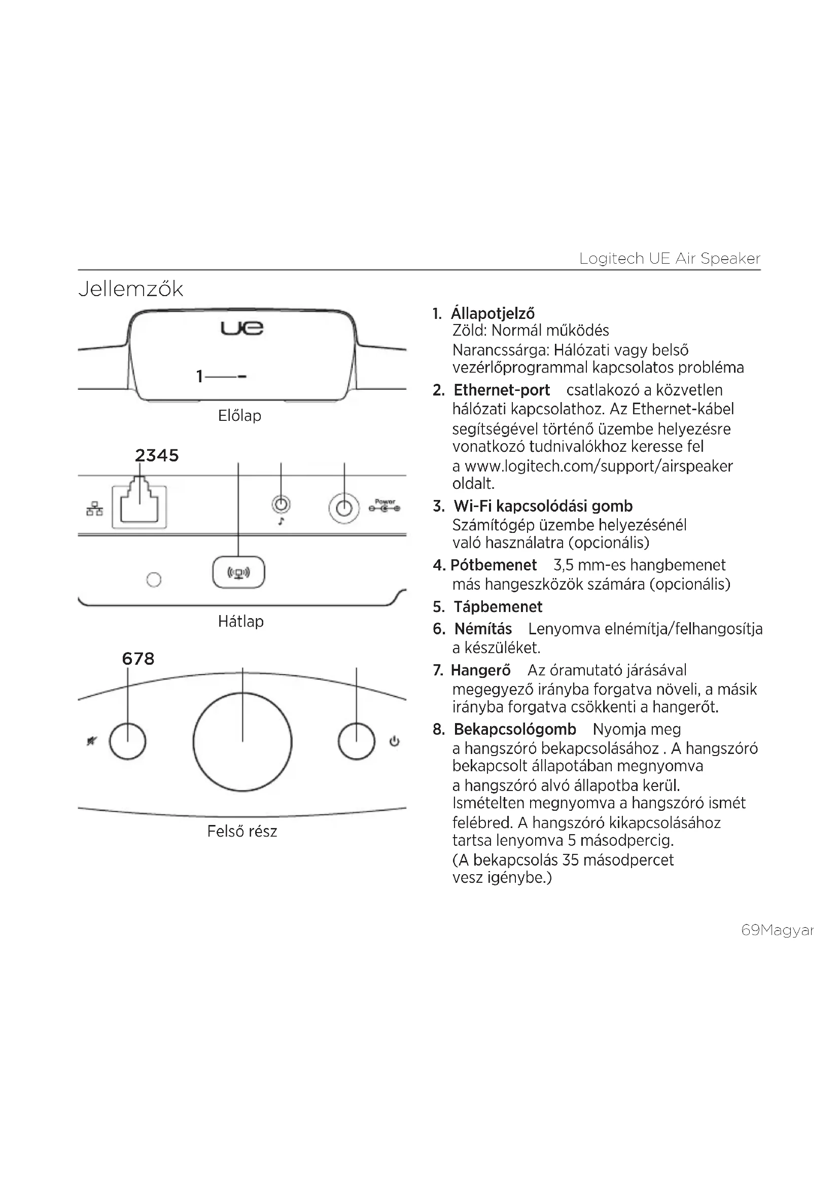 Hátlap Előlap Felső részLogitech UE Air Speaker 7070 Magyar Az AirPlay beállítása iOS készülék segítségével (ajánlott)