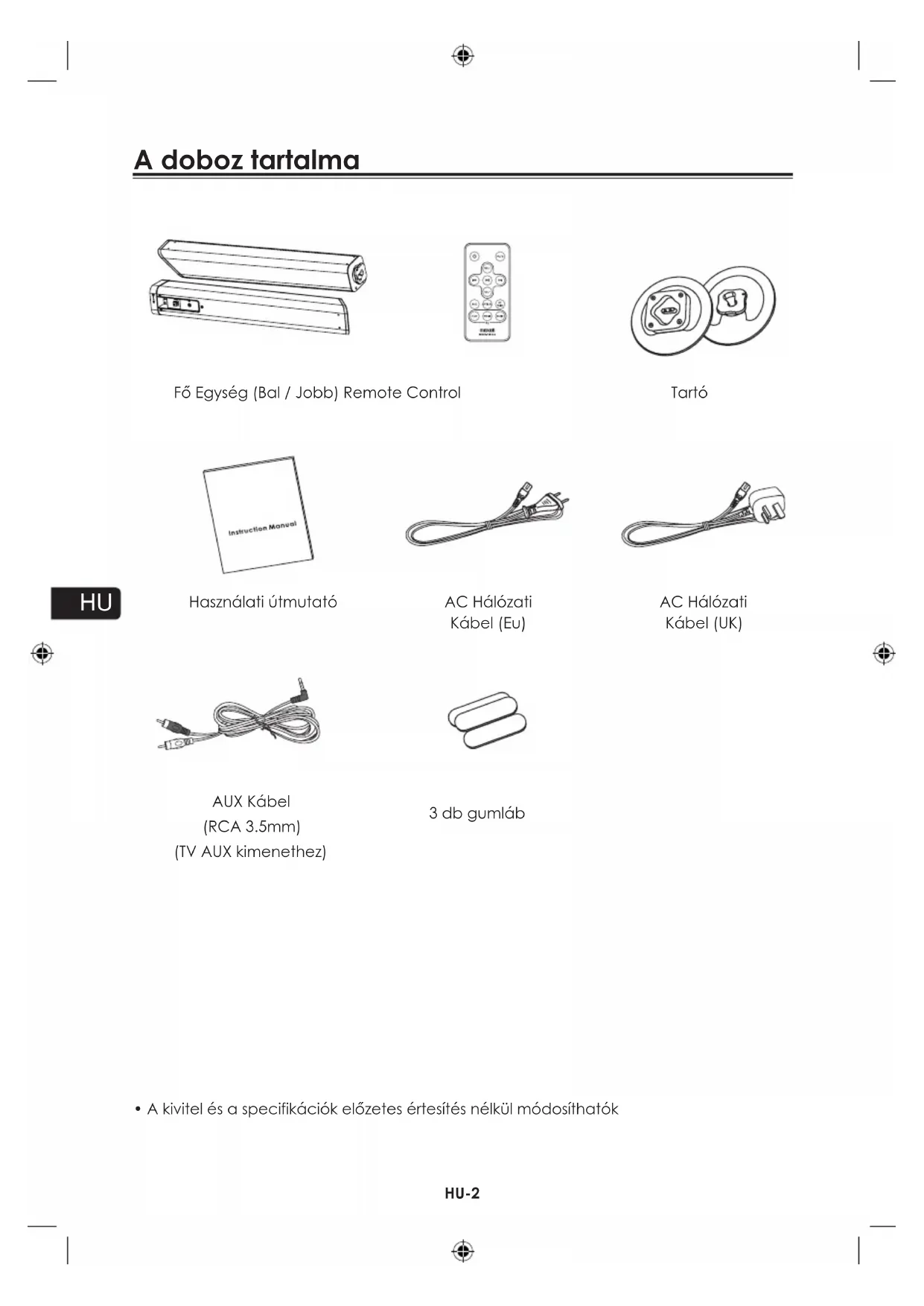 - A kivitel és a specifikácik előzetes értesítés nélkül modosifhatók