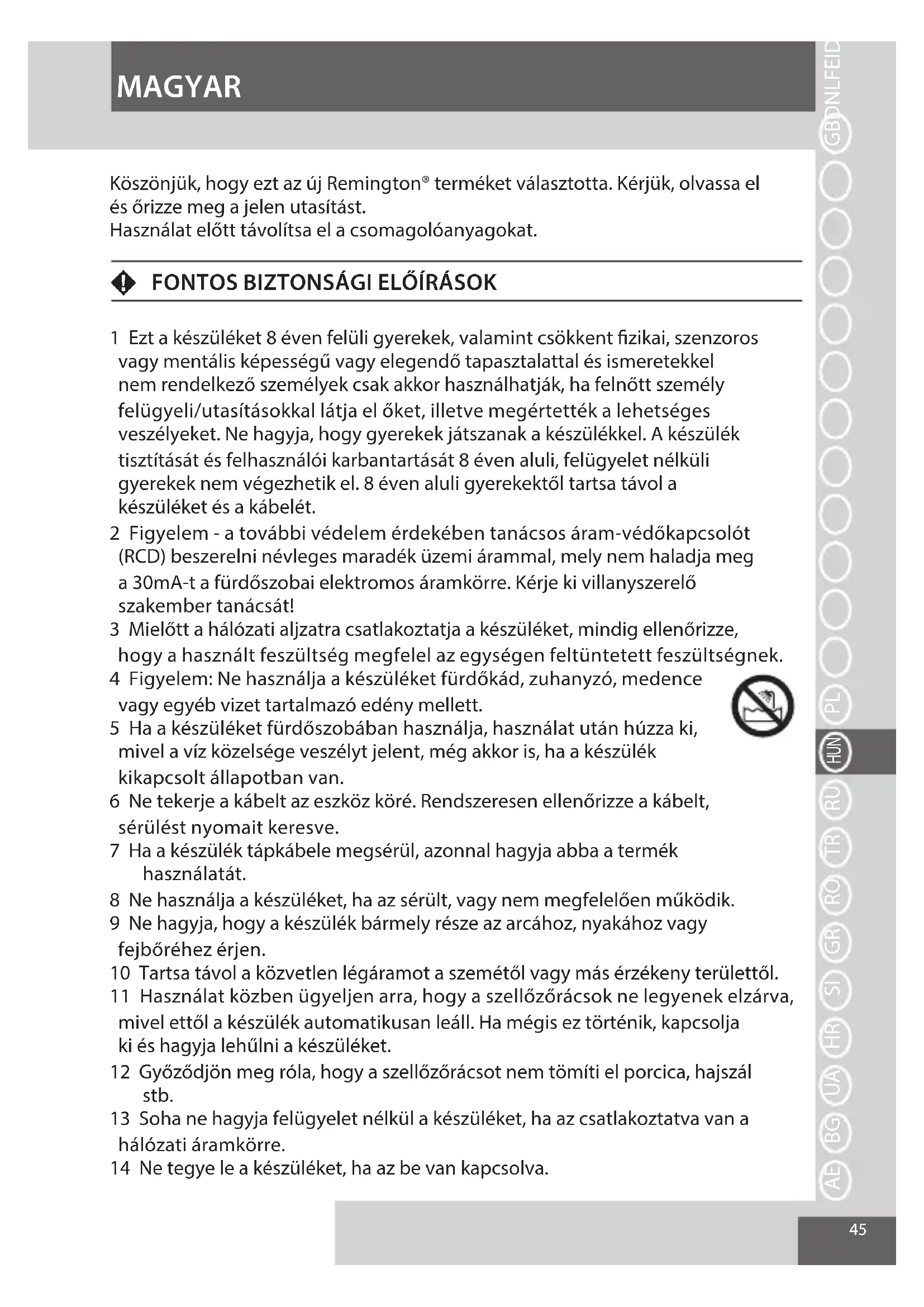 Koszönjuk, hovy=ezt az új Remington® terméket valasztotta. Kérjuk, olvassa el és orizze meg a jelen utasítást.