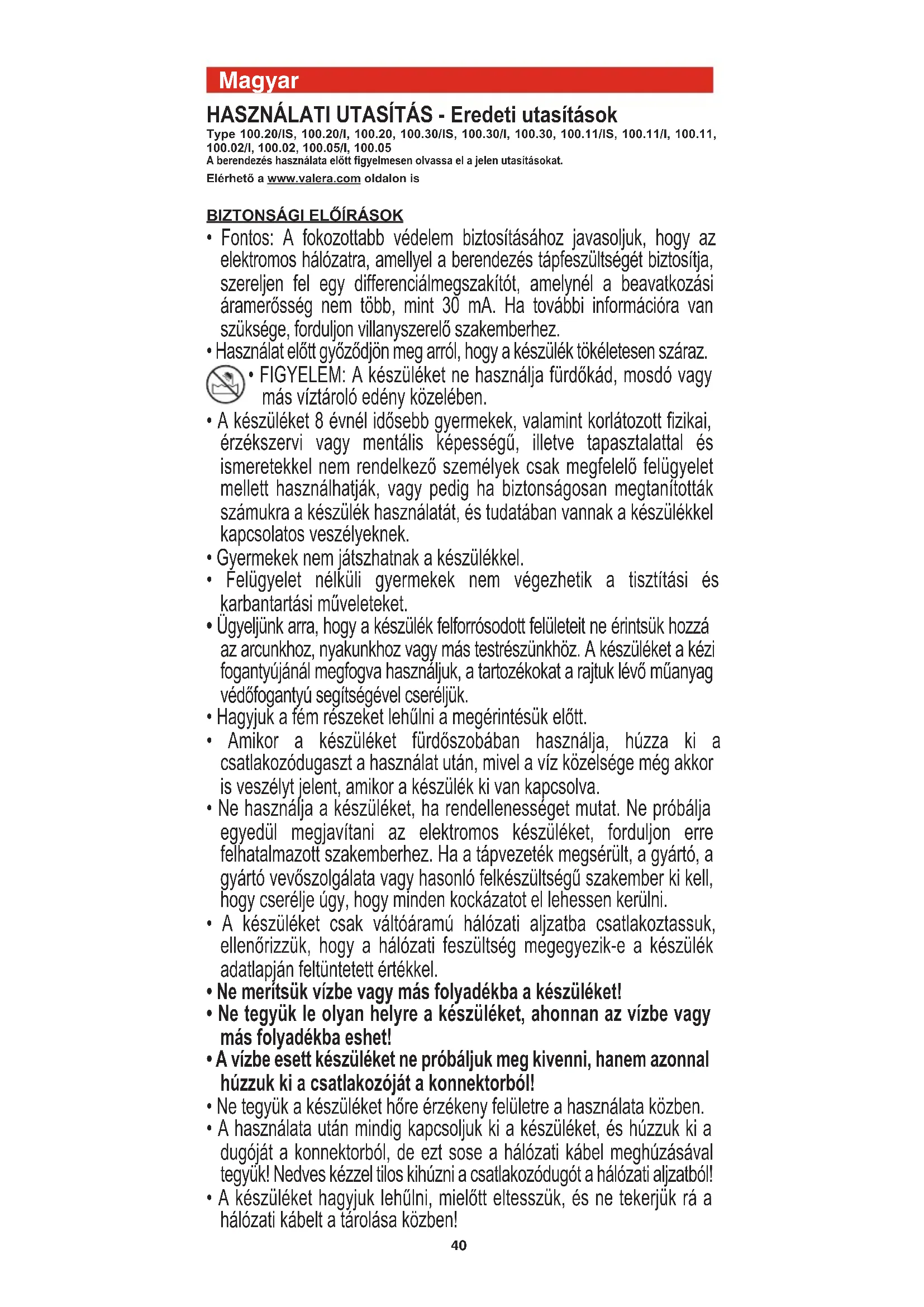 Töltse le az útmutatót a következőhöz Hajvasaló PDF formátumban ingyenesen! Találja meg kézikönyvét Swiss'X Agility - VALERA és vegye vissza elektronikus eszközét a kezébe. Ezen az oldalon közzé van téve az eszköze használatához szükséges összes dokumentum. Swiss'X Agility márka VALERA.