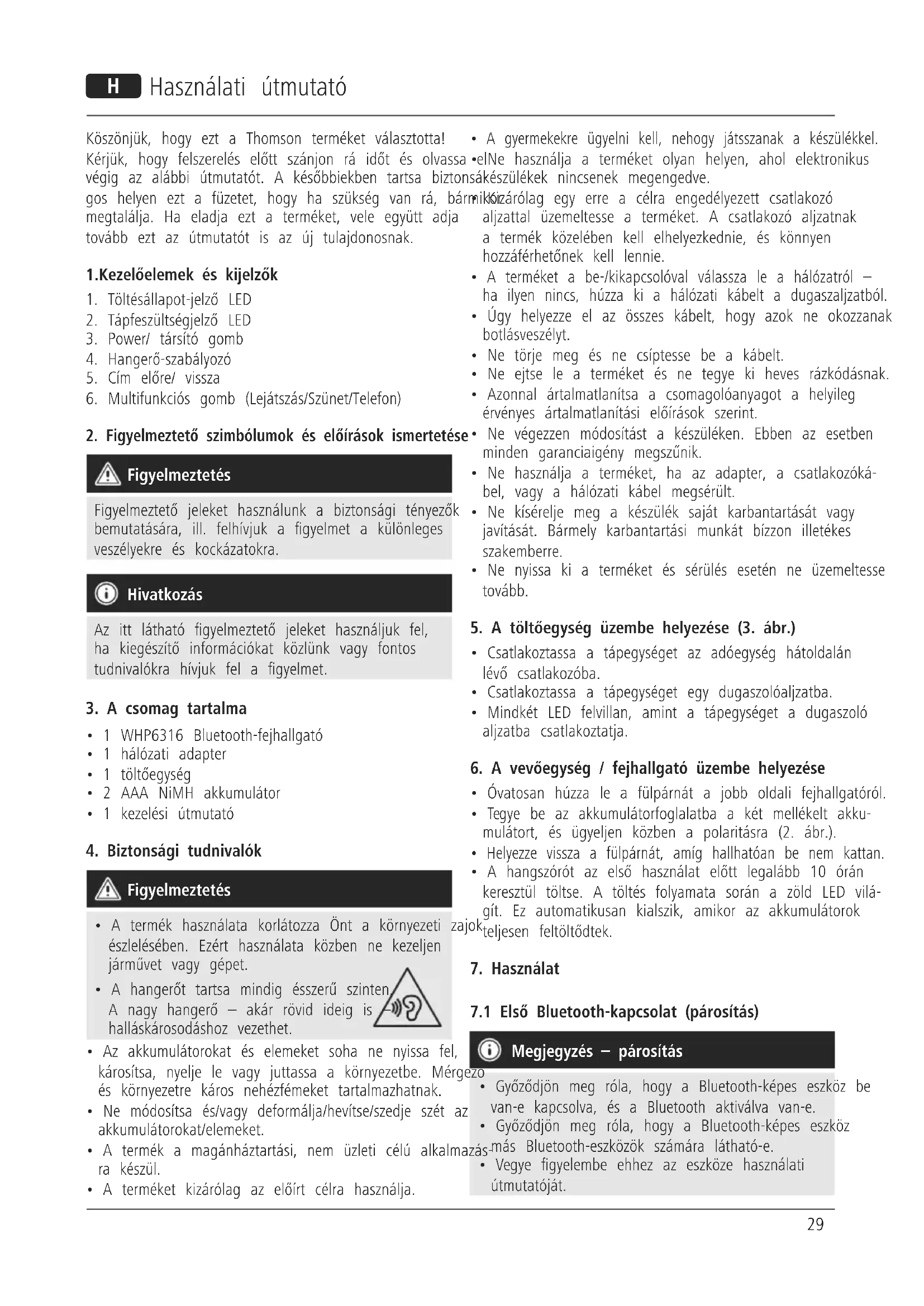 HASZNÁLATI ÚTMUTATÓ WHP6316BT THOMSON