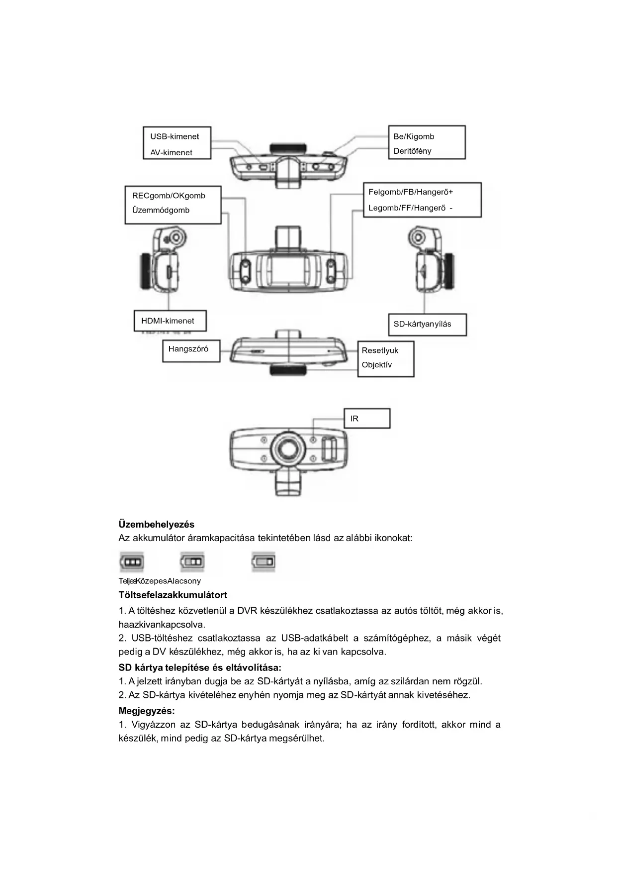 Be / Ki gomb Dert/fny HDMI-kimenet Reset lyuk Objektv SD-krtyanyls Hangszr Fel gomb / FB / Hanger/+ Le gomb / FF / Hanger/ -2. Ha az SD-krtya be van dugva a kszlkbe; a gpel/re belltott trolegysgknt fogja belltani az SD-krtyt, s az eredeti SD-krtyntallhat adatok olvashatatlanok lesznek.