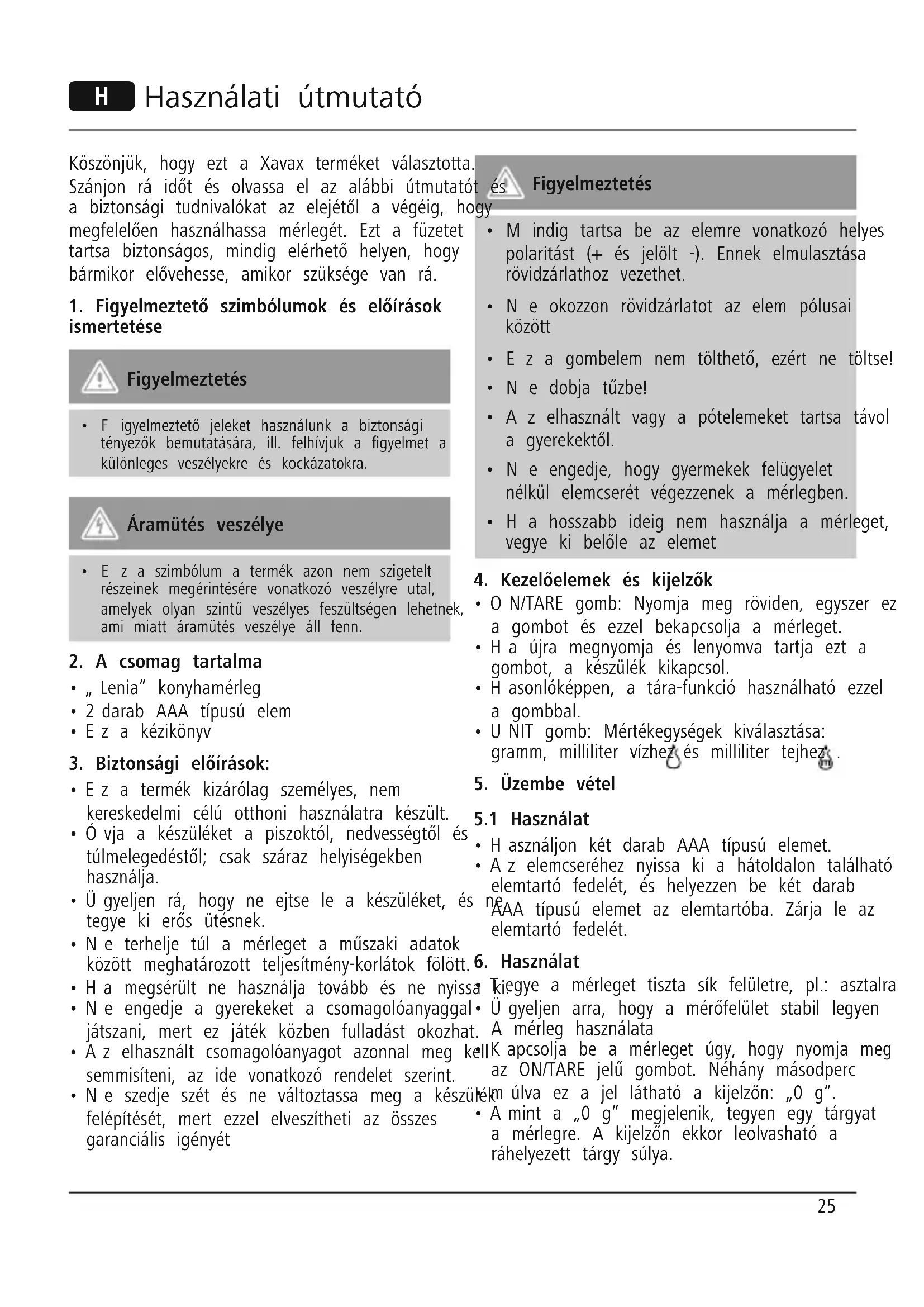 Lenia - Konyhai mérlegek Xavax - Ingyenes használati útmutató