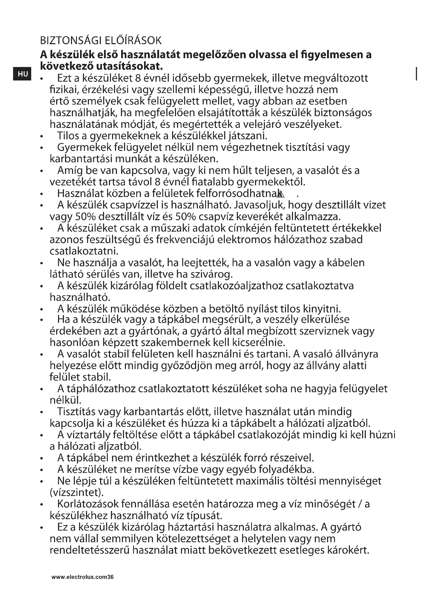 - Nehasználjaavasalót,haleejtették,haavasalónvagyakábelen láthatósérülésvan,illetvehaszivárog.