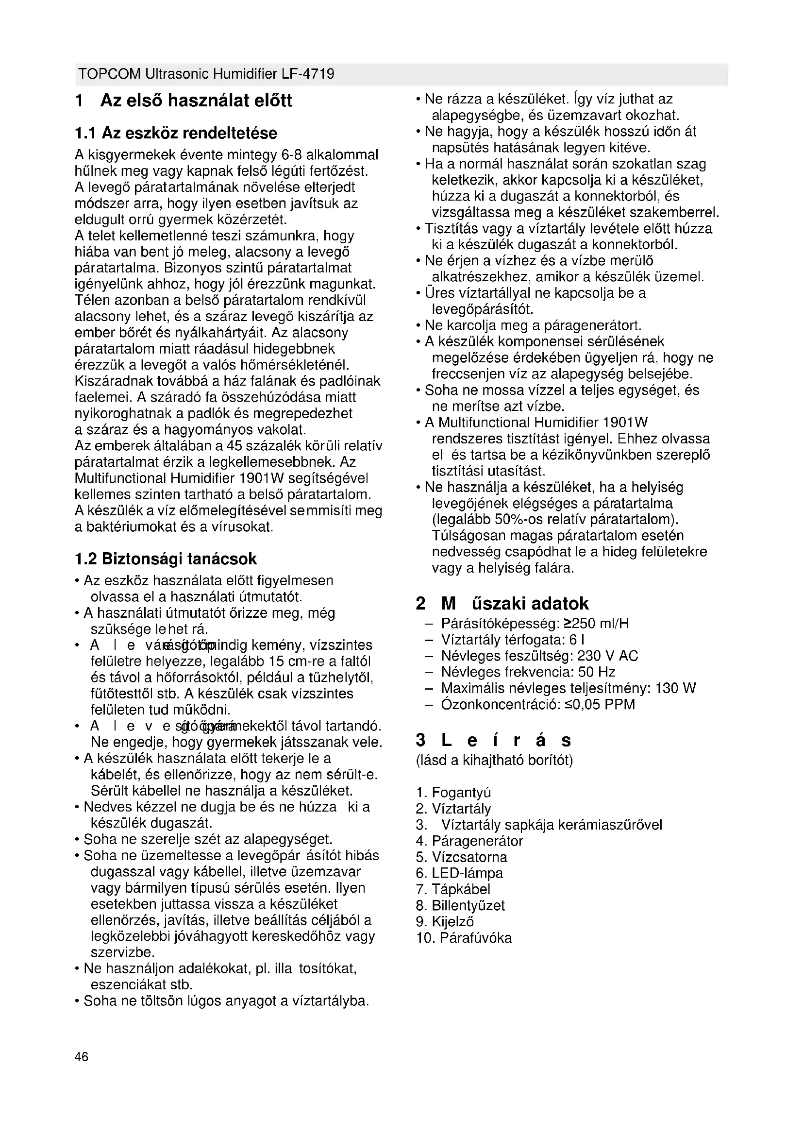 n46 TOPCOM Ultrasonic Humidifier LF-4719 1 Az első használat előtt
