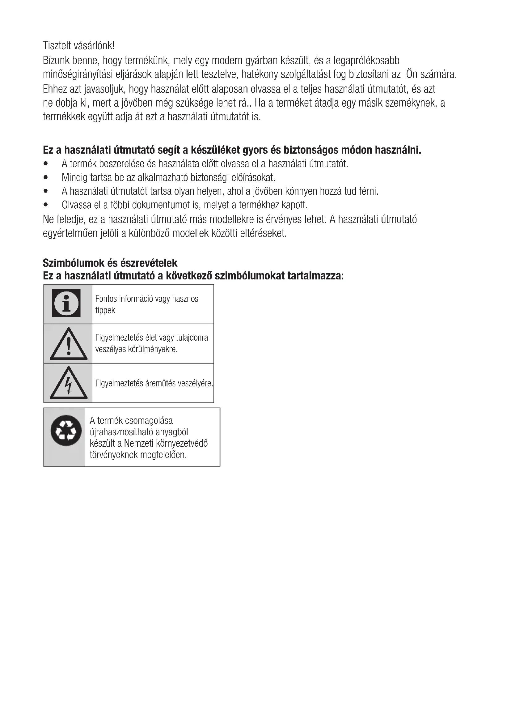 - A használati útmutatót tartsa olyan helyen, ahol a jövőben könnyen hozzá tud férni.