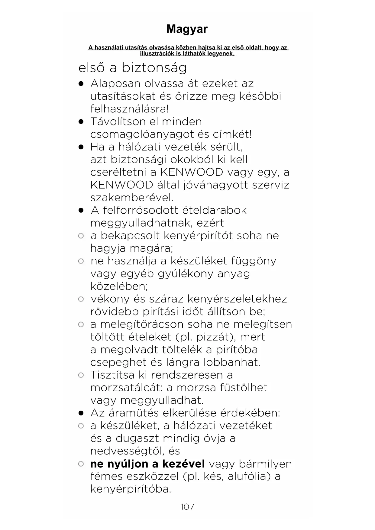ne nyúljon a kezével vagy bármilyen fémes eszközzel (pl. kés, alufólia) a kenyérpirítóba.107 108