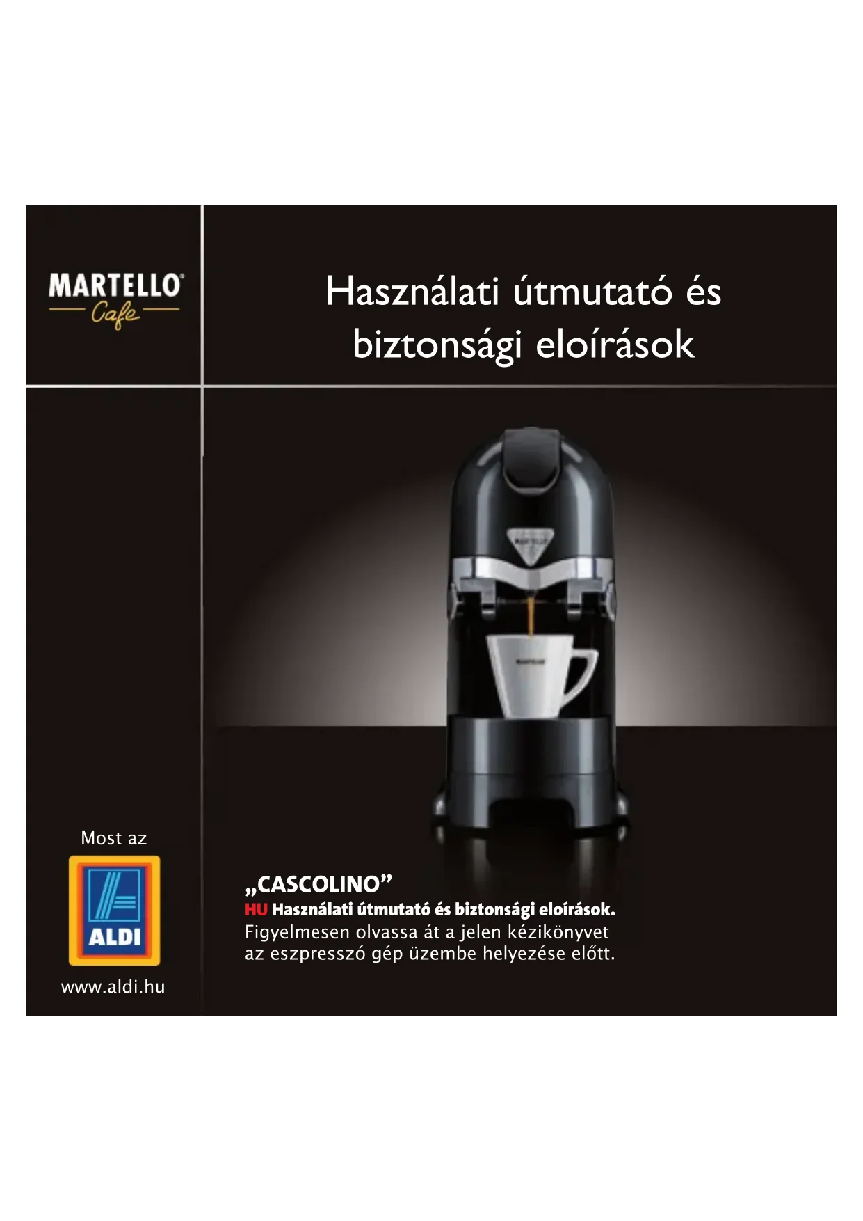 - MARTELLO_Hofer_Cascolino_IM_IT_2013-12-06_IT 24.02.14 10:32 Seite 19Adesso disponibile in tutte le filiali ALDI SUISSE www.aldi-suisse.ch www.martello-cafe.com MARTELLO_Hofer_Cascolino_IM_IT_2013-12-06_IT 24.02.14 10:32 Seite 20Használati útmutató és biztonsági eloírások „CASCOLINO” HU Használati útmutató és biztonsági eloírások. Figyelmesen olvassa át a jelen kézikönyvet az eszpresszó gép üzembe helyezése előtt. Most az www.aldi.hu MARTELLO_Hofer_Cascolino_IM_HU_2013-12-06_HU 24.02.14 10:35 Seite 1g MAGYAR TARTALOMJEGYZÉK Tartalomjegyzék p. 66