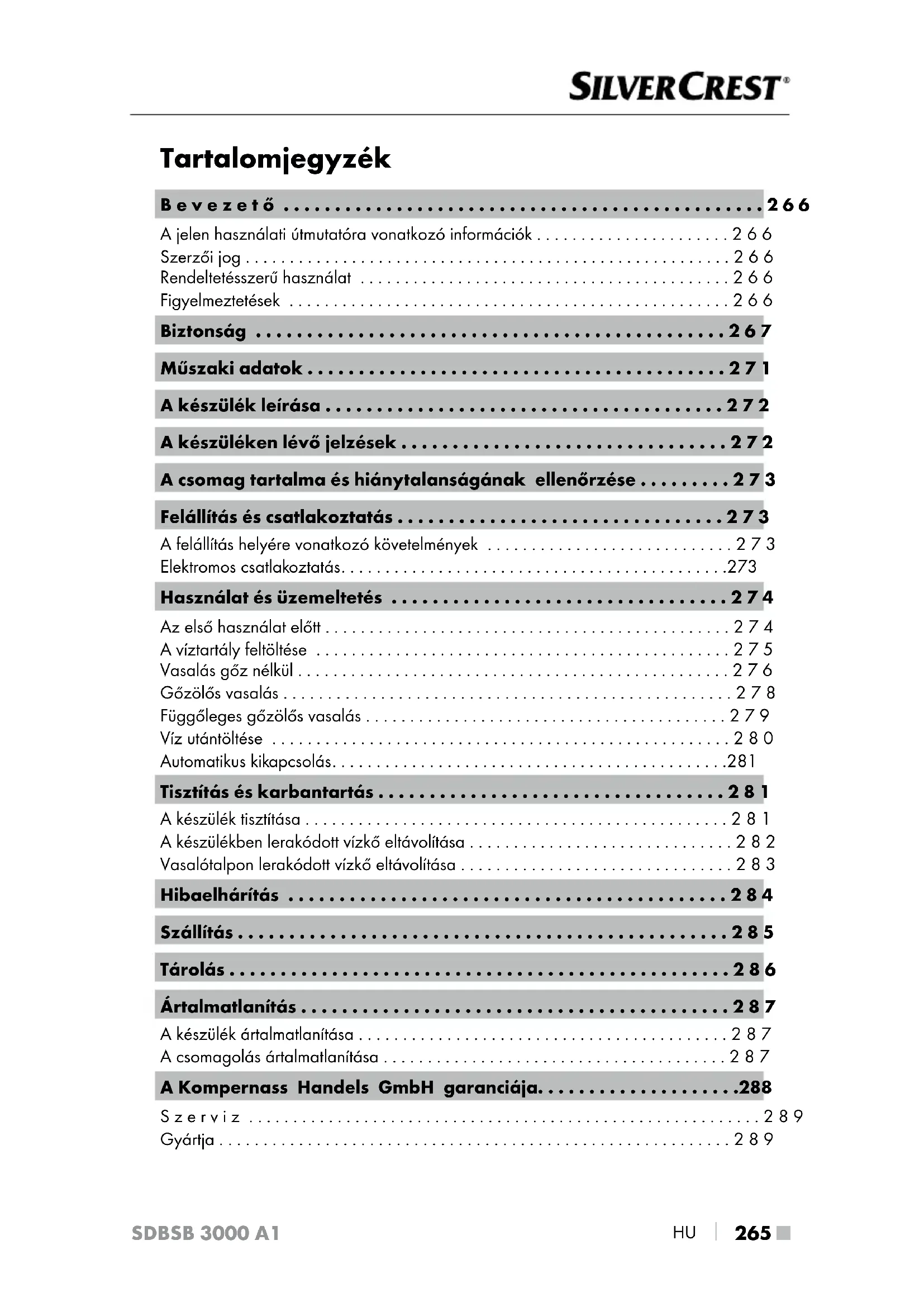 - Gyártja SDBSB 3000 A1 ■ 266 p. 289