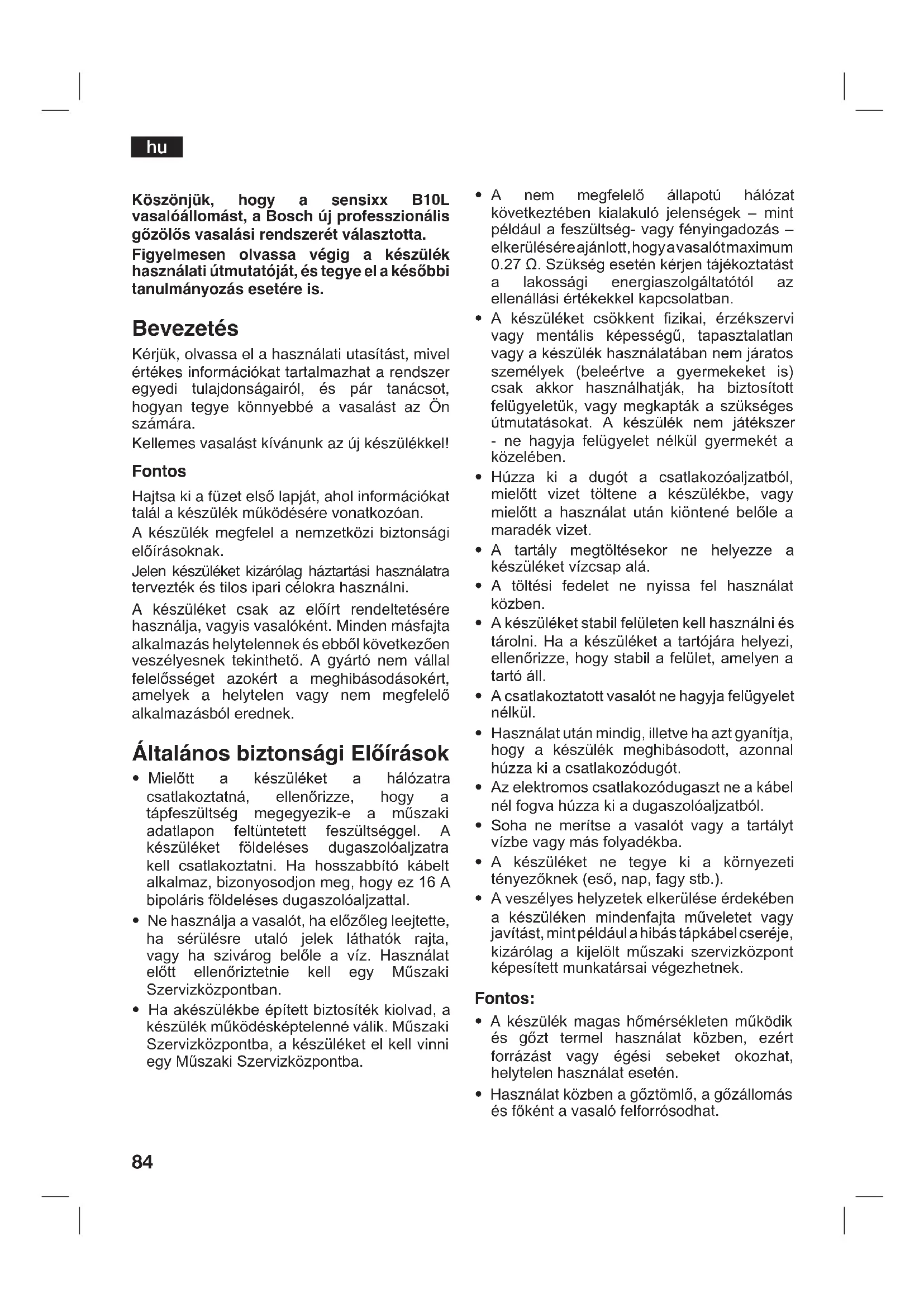 - Használat közben a gőztömlő, a gőzállomás és főként a vasaló felforrósodhat. hu85